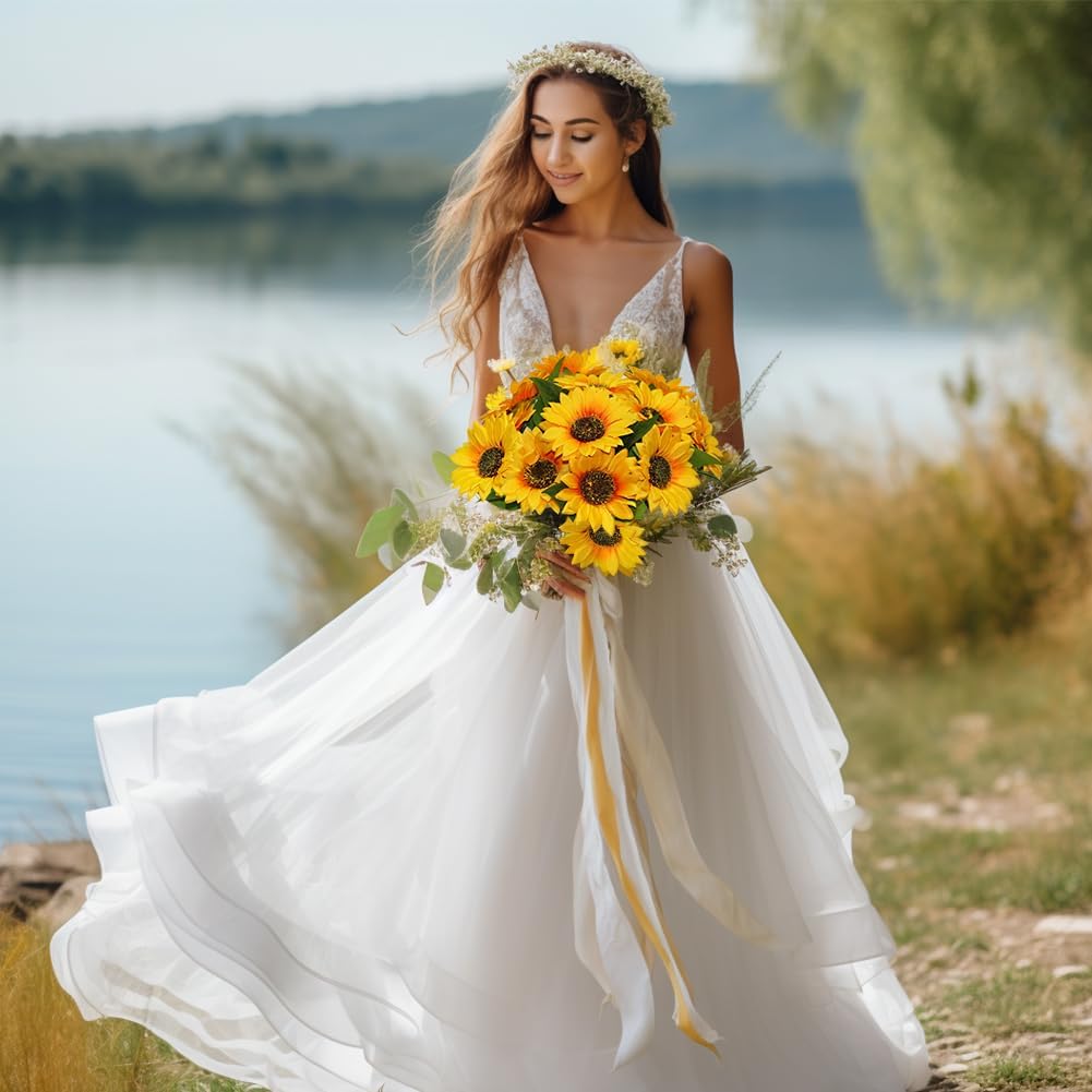Wszechstronne zastosowanie: Piękne słoneczniki są nie tylko idealne do kompozycji kwiatowych i dekoracji wnętrz, ale także są świetną ozdobą na imprezy, takie jak ceremonia ślubna, baby shower, przyjęcie w ogrodzie itp.