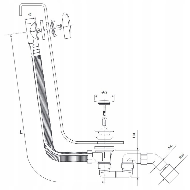 przeznaczony do wanien o średnicy odpływu ø5,2 cm