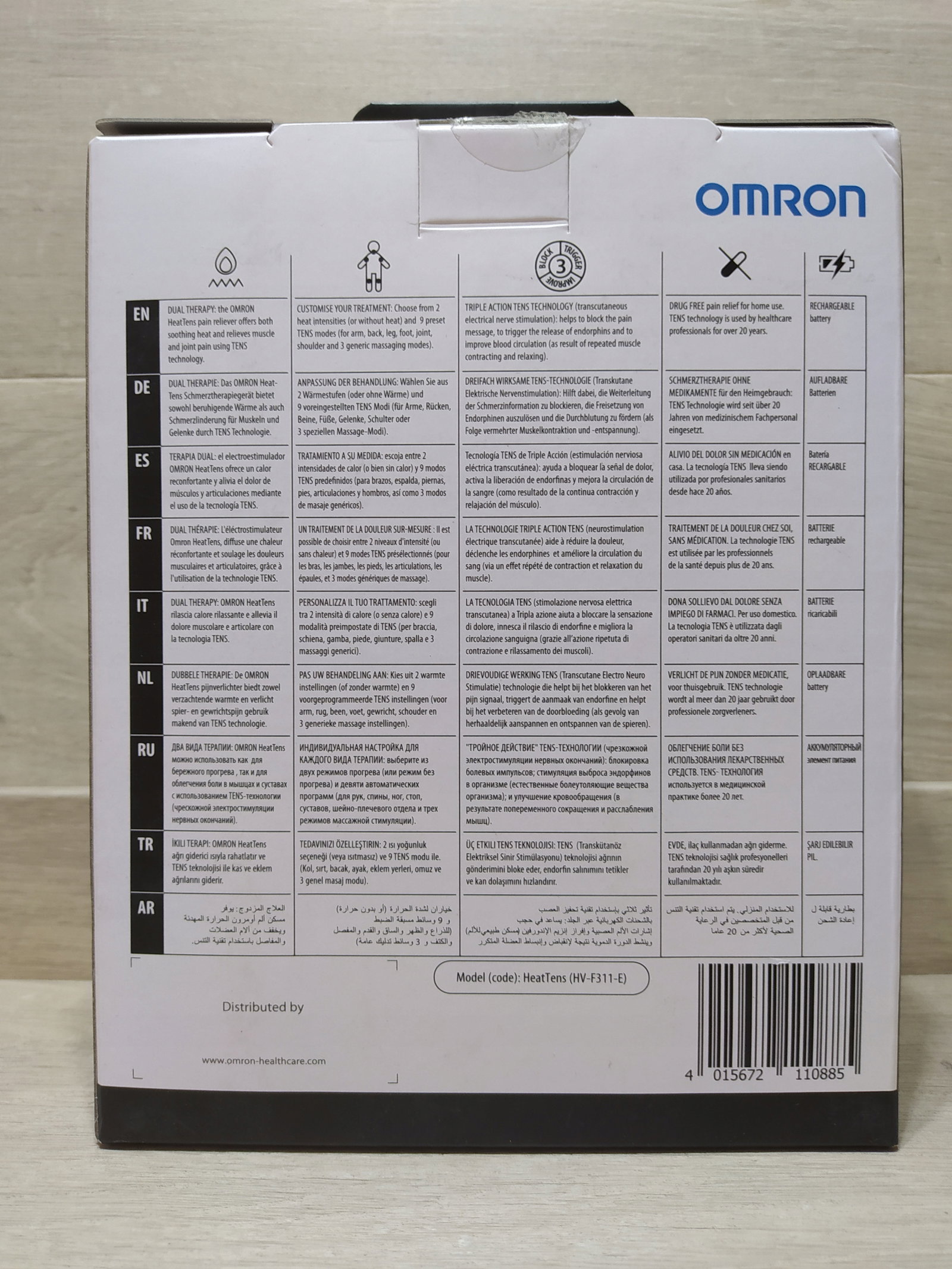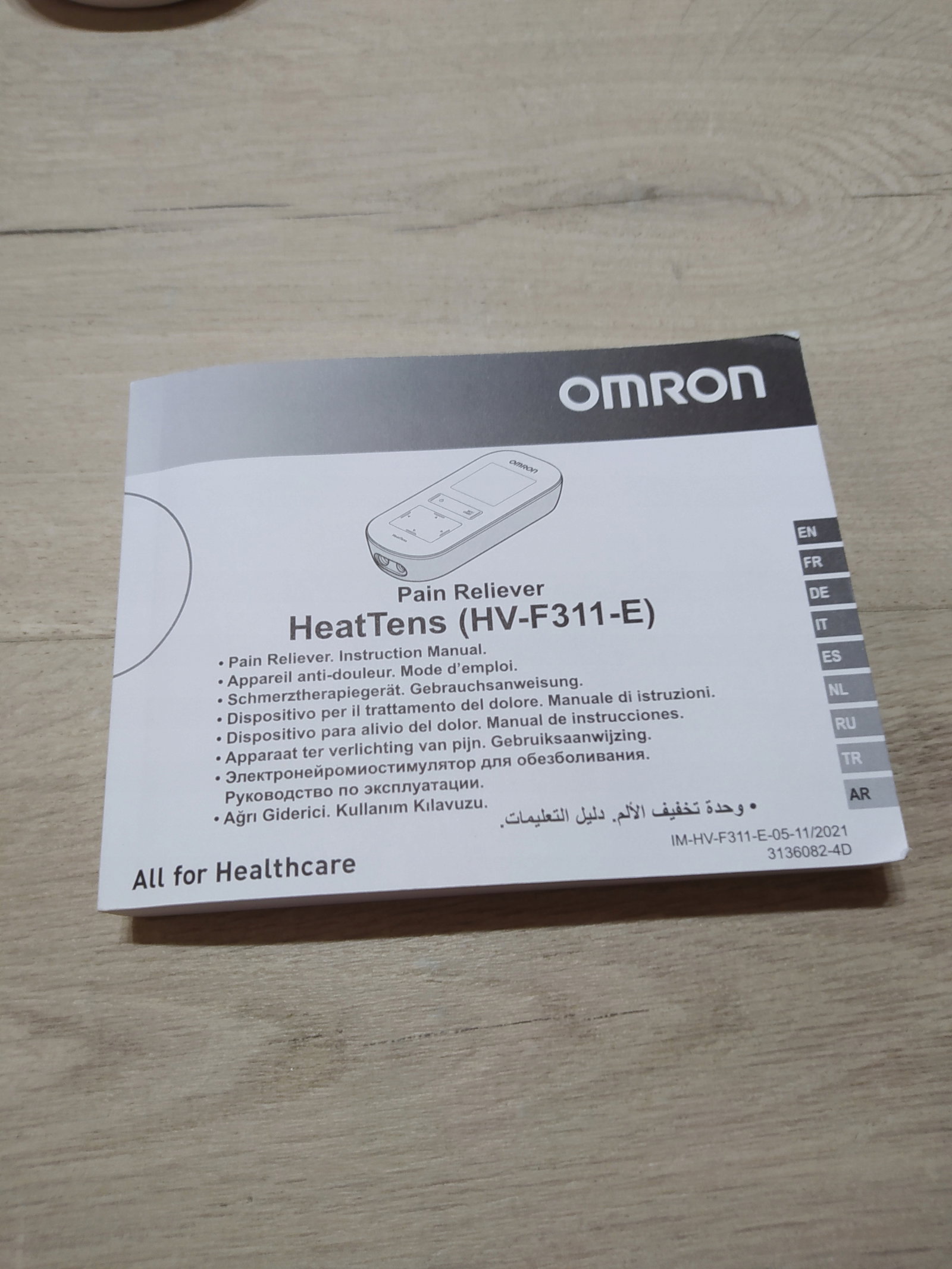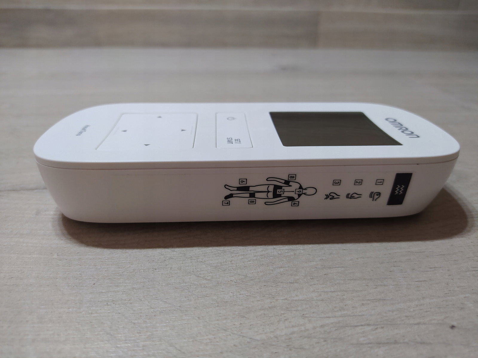 - Zawartość opakowania: 1 urządzenie OMRON HeatTens, 1 kabel elektrody, 2 żele OMRON (HV-PAD-3E), zasilacz sieciowy i instrukcja obsługi