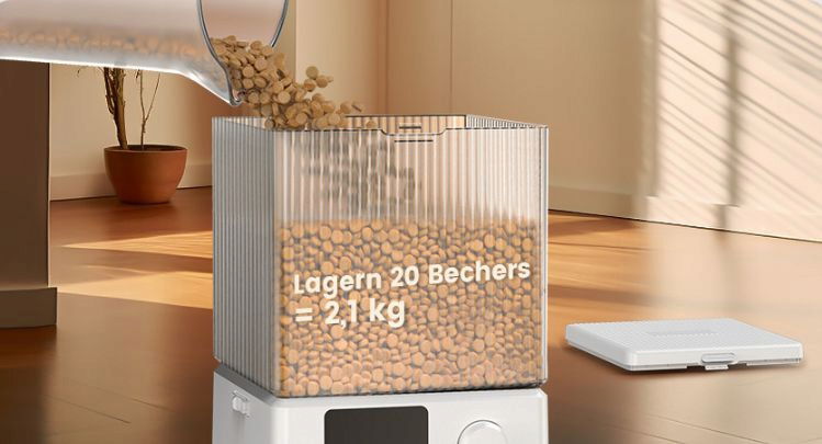 Kontrola porcji - za pomocą aplikacji urządzenie do karmy dla kotów można ustawić na 1-12 posiłków dziennie, a każdy posiłek może być karmiony 1-30 porcjami suchej karmy w określonym czasie. 1 porcja wynosi ok. 7 g (w zależności od wielkości karmy dla kotów). Karma dla kotów może pomieścić 2 kg suchej karmy, a dwukierunkowe karmienie może dokładnie podzielić suchą karmę na dwie połówki.