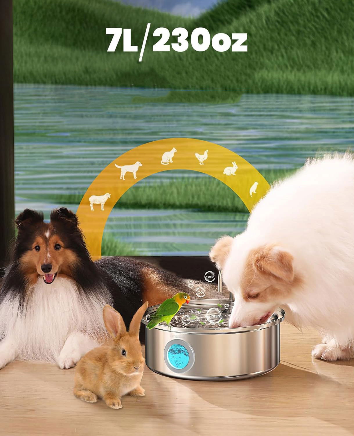 ONEISALL MISKA POIDŁO FONTANNA DLA PSA KOTA CICHA STAL NIERDZEWNA 7L