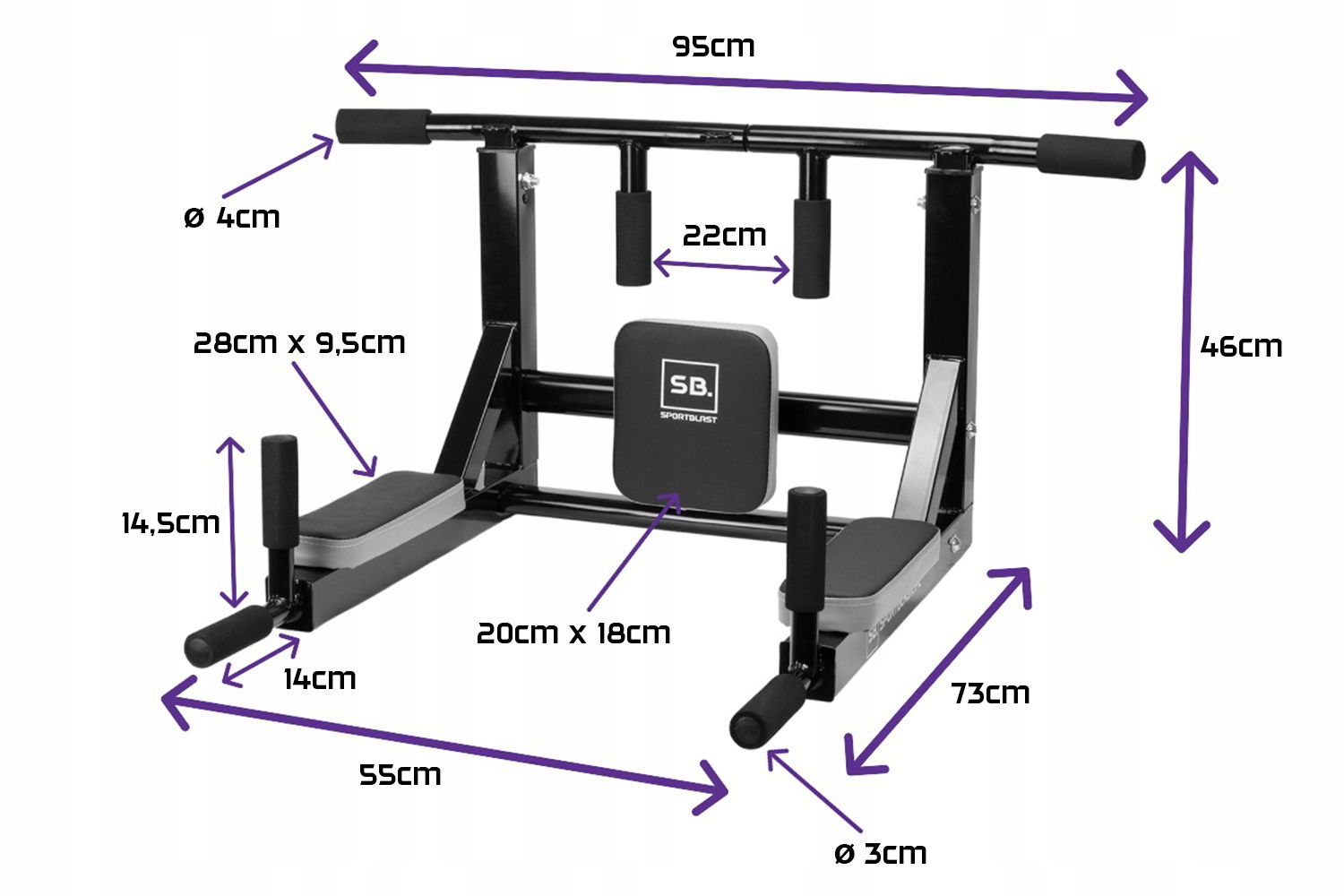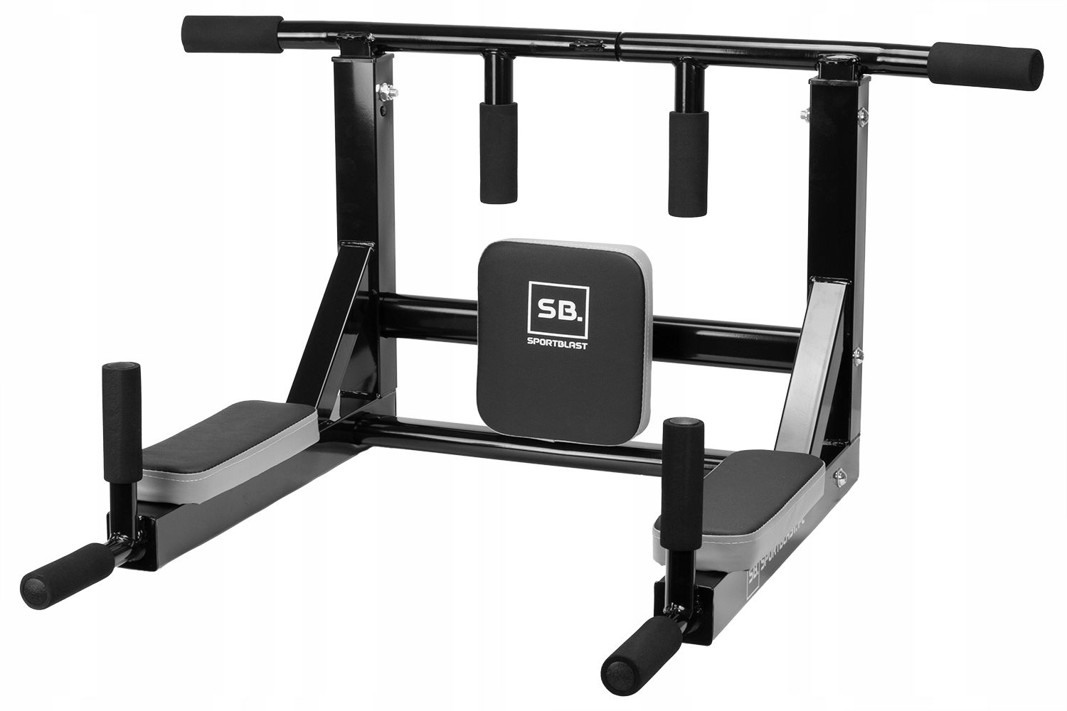 ⭐Drążek wielofunkcyjny z poręczami marki SPORT-BLAST to bardzo uniwersalny i funkcjonalny sprzęt przystosowany do zawieszenia na ścianie. Drążek posiada dwa sposoby montażu dzięki czemu możesz go używać jako drążka do podciągania z różnymi chwytami, a także jako poręczy do dipów czy treningu mięśni brzucha. Wyposażony został również w dodatkowe haki montażowe na których możesz zawiesić akcesoria bokserskie czy zaczepić gumy treningowe.