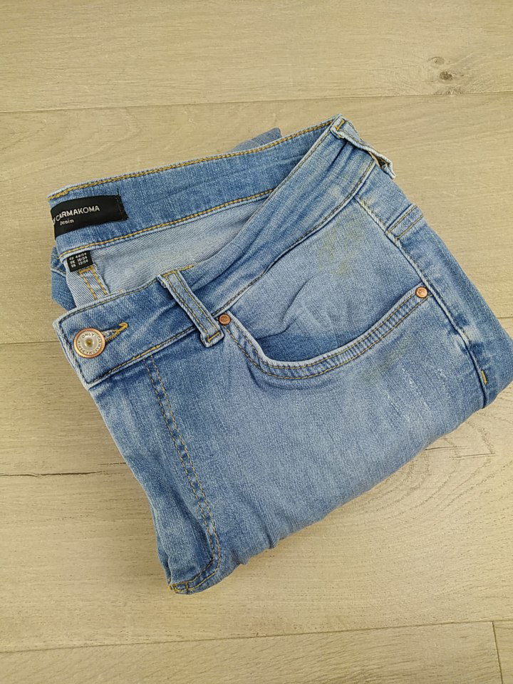 - Klasyczny styl z 5 kieszeniami, szlufki na pasek, miękki materiał stretch-denim