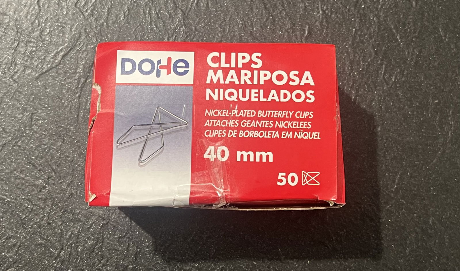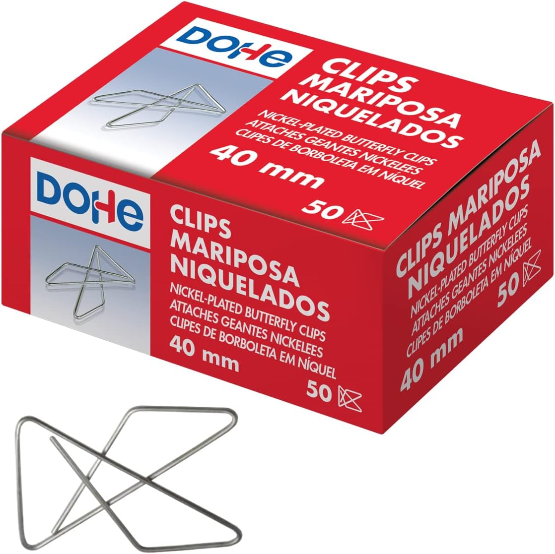 Opakowanie 50 klipsów spinaczy wzór motylkowy 40 mm Dohe
