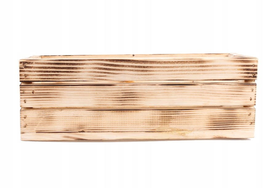 Skrzynka jest opalana, dzięki czemu sęki i struktura drewna są podkreślone, a to zdecydowany plus skrzynki. Rośliny na takim tle prezentują się jeszcze lepiej.