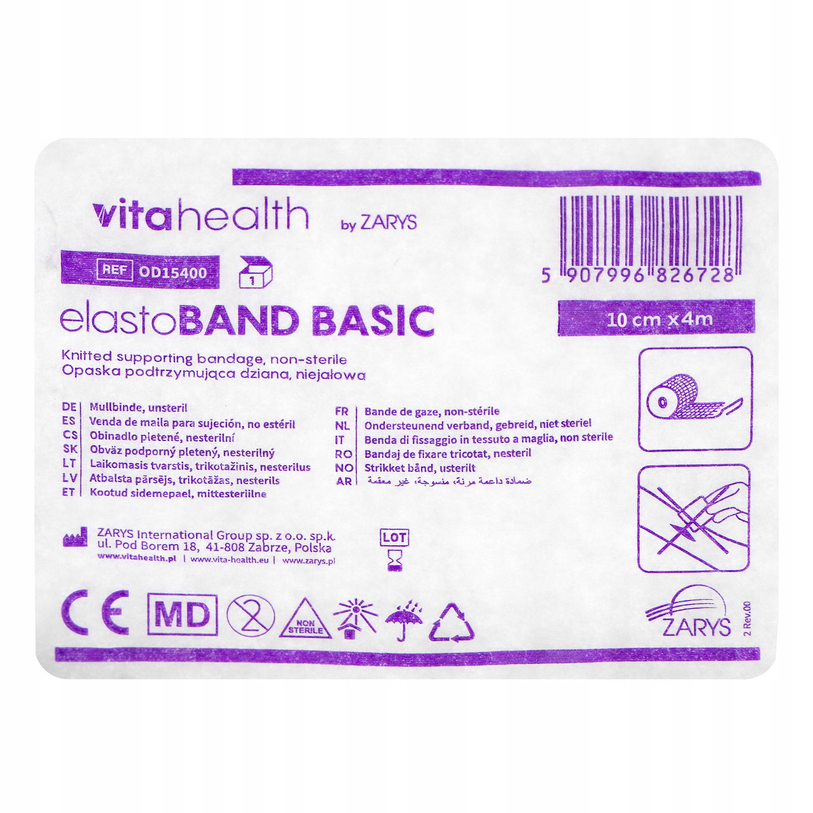 Opaska dziana podtrzymująca o wymiarach 10 cm x 400 cm. Bandaż wykonany z przędzy z włókien wiskozowych. Opaski nie należy stosować bezpośrednio na zranione miejsce. Produkt pojedynczo pakowany, opakowanie zawiera 25 bandaży.