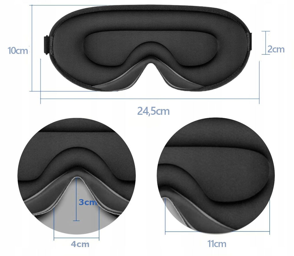 OPASKA MASKA NA OCZY RZĘSY DO SPANIA 3D KOMFORTOWA ZACIEMNIAJĄCA 99% ŚWIATŁA