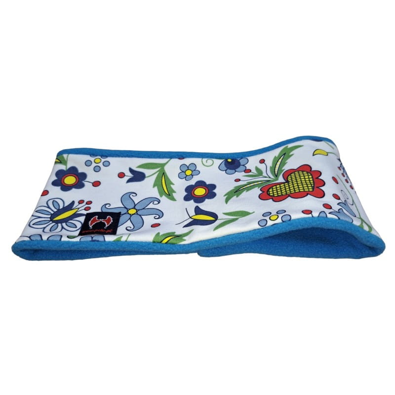 Opaska na głowę ocieplana folk kaszubski biały i niebieski