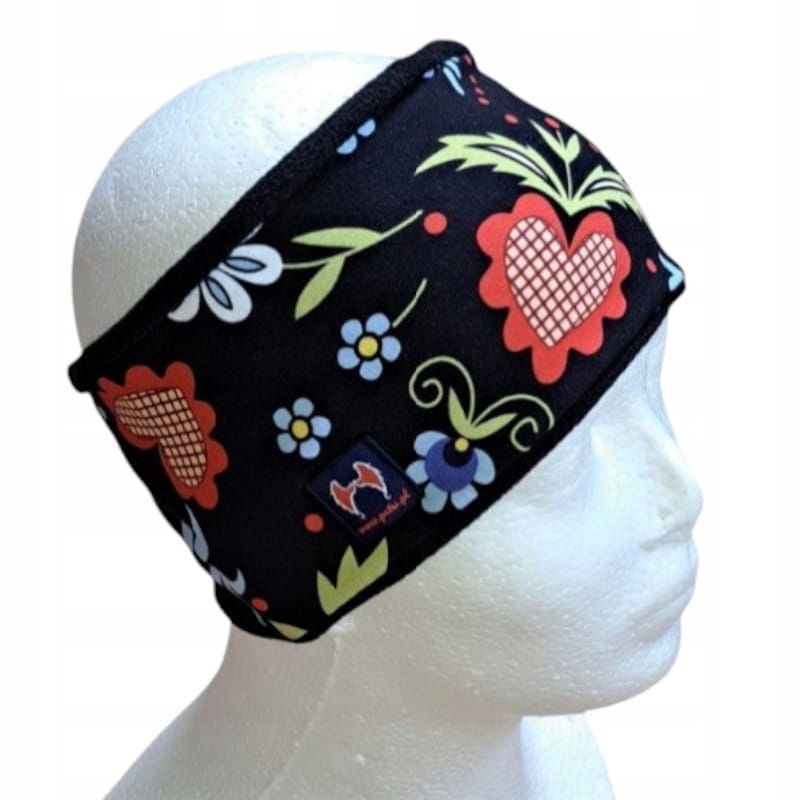 Opaska na głowę ocieplana folk kaszubski w kolorze czarnym