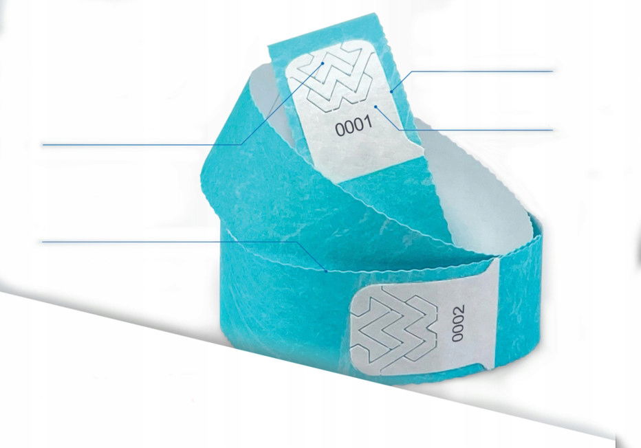 Opaski identyfikacyjne, bilety jednorazowego wstępu, idealne na każdą okazję, bardzo wytrzymałe oraz wodoodporne. Opaski są numerowane, samoprzylepne, posiadają swój własny bardzo wytrzymały klej, dzięki czemu nadają się również na kilkudniowe imprezy.
