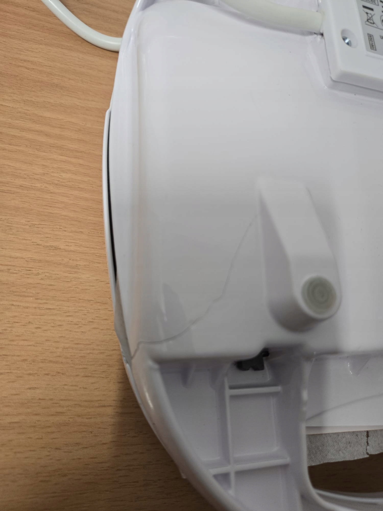 UWAGA: Produkt outletowy - nie był używany, lecz posiada lekkie pękniecie które nie wpływa na użytkowanie, opiekacz jest w pełni sprawny. Zdjęcia w opisie.