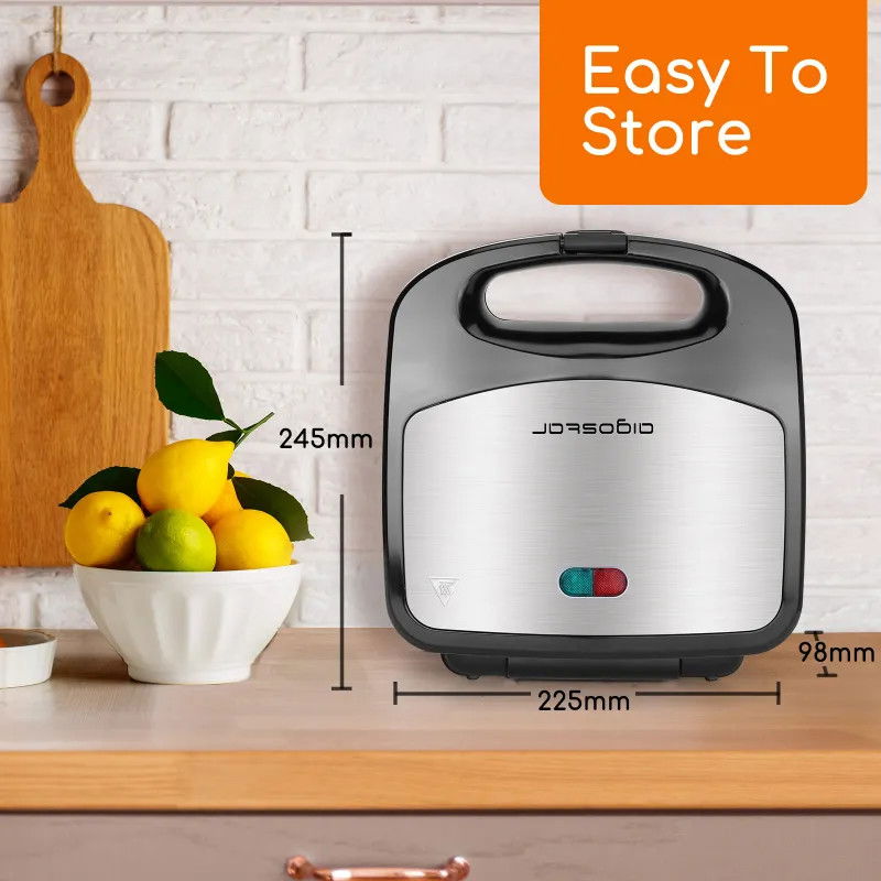 Wielofunkcyjny projekt do przygotowywania pysznych śniadań. Pieczenie dwustronne. Płyty z powłoką nieprzywierającą, łatwe w czyszczeniu i zdrowsze. Automatyczny system termostatyczny. Konstrukcja blokady uchwytu zapewniająca lepszą kompaktowość. Pionowe i zdrowsze przenośny projekt do przechowywania. Podwójna lampka kontrolna zasilania, łatwa w obsłudze. Gotowanie różnych śniadań jest w rzeczywistości bardzo proste! Trzy zestawy wyjmowanych płyt do pieczenia, kanapki, gofry, Panini, różne pyszne, rób tak, jak lubisz.. Pieczone obustronnie z płytą górną i dolną, nagrzewają się szybciej i równomiernie, oszczędzając czas bez czekania.. Automatyczna praca termostatu zapewniająca optymalną temperaturę pieczenia, nie ma potrzeby sprawdzania warunków gotowania, a jedzenie jest doskonale ugotowane.. Zablokowanie rączki sprawia, że wafel jest mocno dociśnięty i równomiernie nagrzany.. 1- Trzymaj to urządzenie poza zasięgiem dzieci.",2-Zawsze używaj urządzenia na płaskiej powierzchni.. 3-Przed czyszczeniem odłącz zasilanie.. 4-Nigdy nie używaj ściernych lub chemicznych środków czyszczących.. 5-Nie zanurzać urządzenia w wodzie.. 6-Dokładnie osusz wszystkie akcesoria przed przymocowaniem ich do urządzenia.. 7-Nigdy nie dotykaj urządzenia, gdy działa.. 8-Nie stosować wyrobów żelaznych mających bezpośredni kontakt z wyrobem, aby nie zarysować powłoki.. 9-Uważaj na wysoką temperaturę, żeby się nie poparzyć.