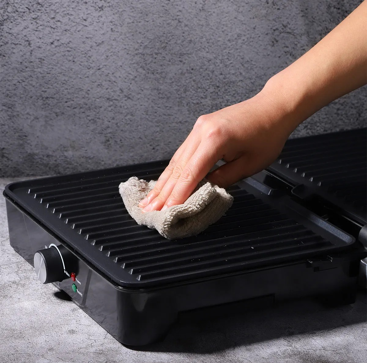 Duża moc 2000 watów, górna i dolna płyta nagrzewają się jednocześnie, szybko piecze i oszczędza czas