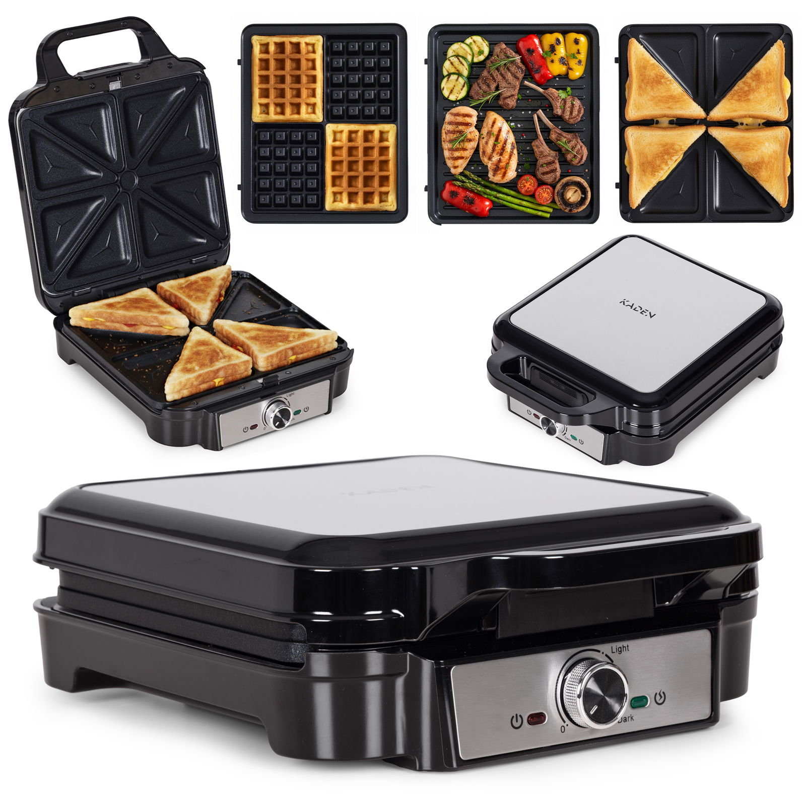 - Opiekacz 3w1 marki KADEN to niezastąpione urządzenie w każdej kuchni – idealne dla miłośników różnorodnych śniadań i szybkich przekąsek.