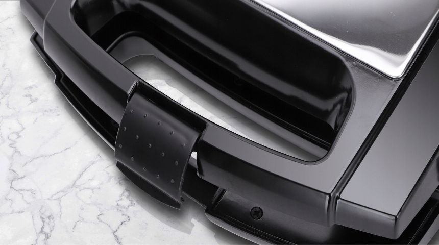 Opiekacz posiada trójkątne płyty grzewcze, które równo opiekają kanapki z obu stron, nadając im złocistą i chrupiącą skórkę. Nieprzywierająca powłoka zapobiega przypalaniu i ułatwia czyszczenie urządzenia.