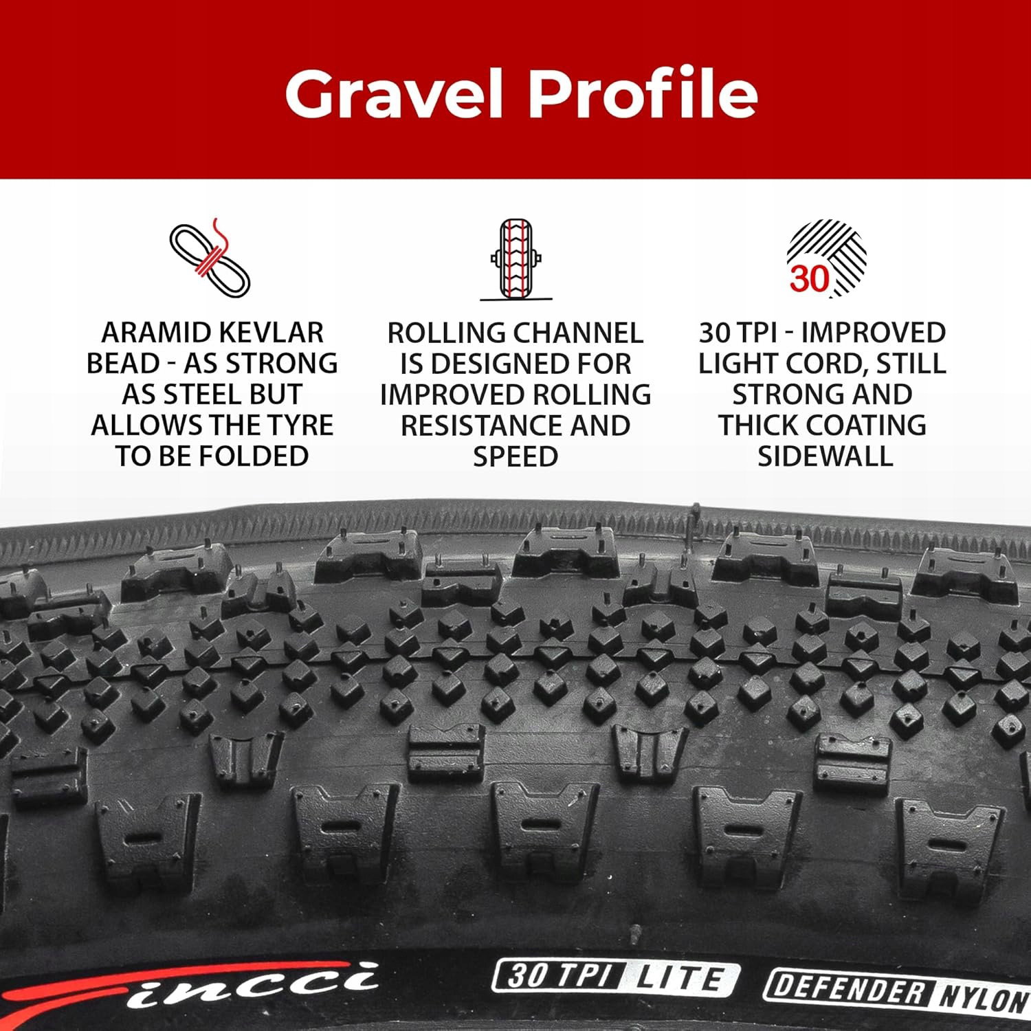 Szybko toczący się profil o wysokiej przyczepności zapewnia szybszą i wygodniejszą jazdę. Zapewnia również dobrą przyczepność na nierównych powierzchniach, takich jak utwardzone drogi lub chodniki. Idealna opona zamienna do rowerów wyścigowych z kołami 700C