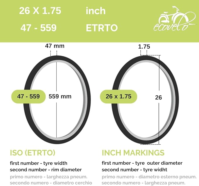 Oferujemy opony rowerowe Ecovelo, które świetnie sprawdzą się w każdej sytuacji, zapewniając wysoki komfort jazdy. W zestawie znajdziesz dwa opony o rozmiarze 26 x 1,75 (47-559). Ich klasyczna kolorystyka w czarno-białe wzory doda stylu każdemu rowerowi, a ich trwała konstrukcja zapewni długotrwałe użytkowanie.