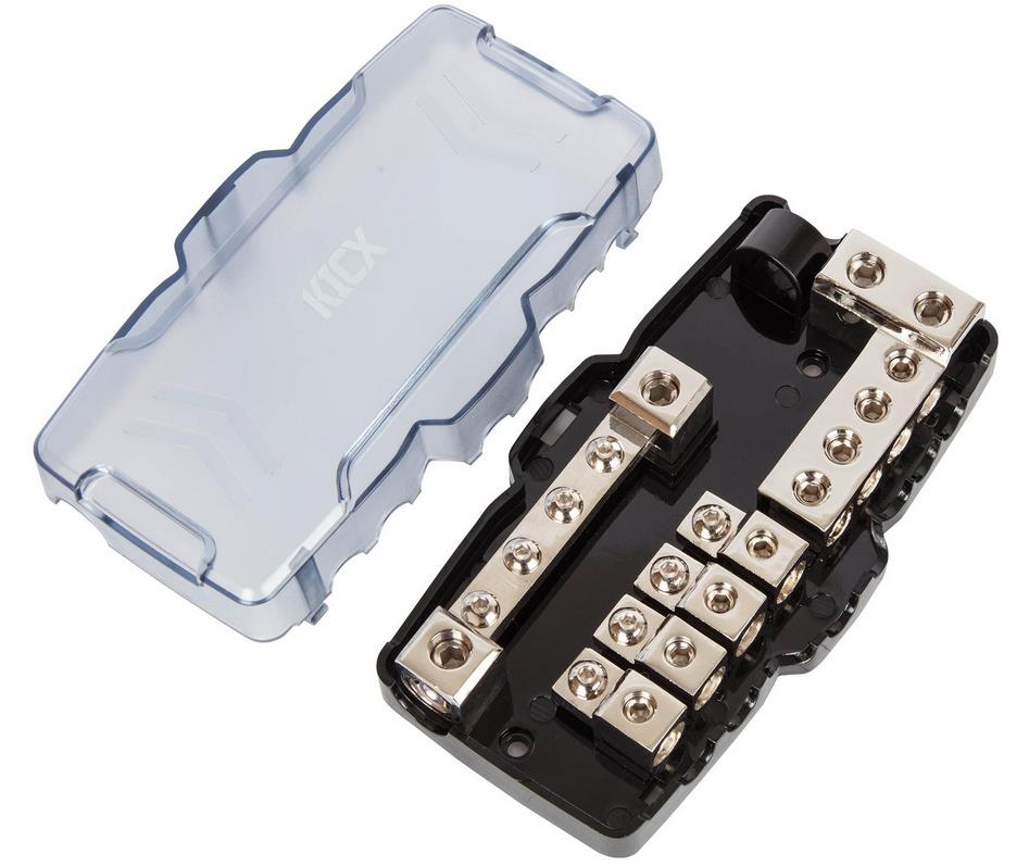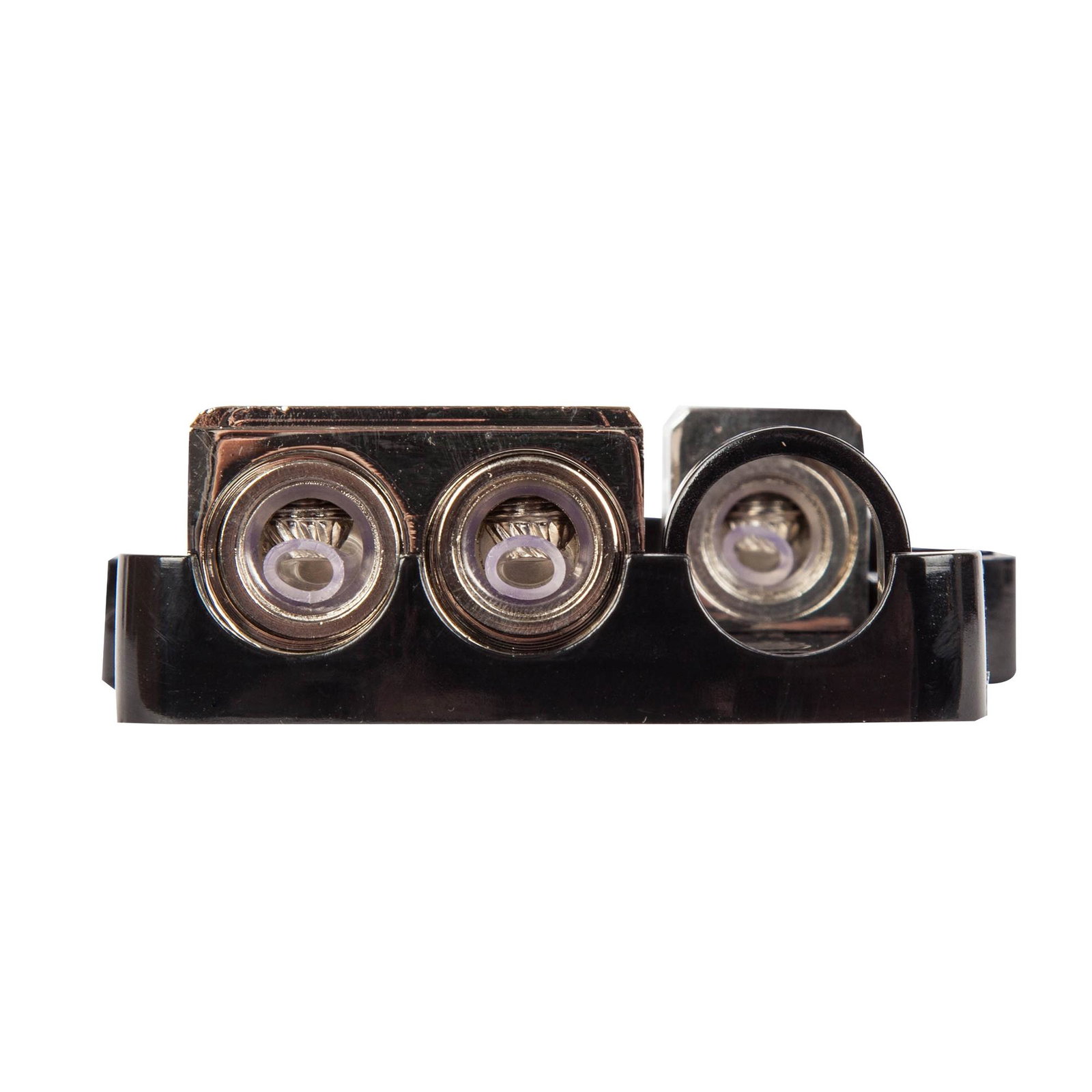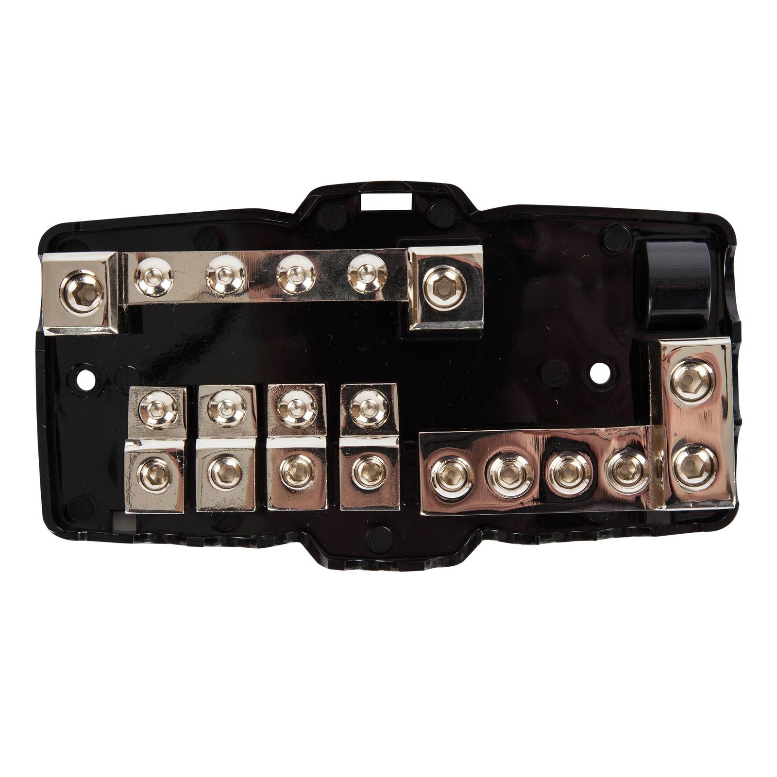 • Wejścia zaciskowe „+” - 2 x 0GA (53,5 mm²) z 4 oprawkami bezpieczników