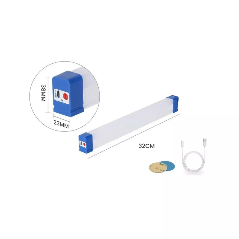 Bezprzewodowa, przenośna listwa magnetyczna led, przenośna świetlówka, ładowana z dowolnej ładowarki USB. Posiada trzy tryby świecenia 100%, 50% i migotanie. W zestawie metalowe samoprzylepne podkładki mocujące do przyklejenia np. w szafce i kabelek do ładowania z portu USB. Oprawa posiada dwa magnesy mocujące i wieszaczek dzięki czemu można ją powieść w dowolnym miejscu. Lampa może być też z powodzeniem używana w plenerze jako oświetlenie namiotu czy przyczepy, a w razie problemów możemy włączyć tryb S.O.S poprzez przytrzymanie przycisku.