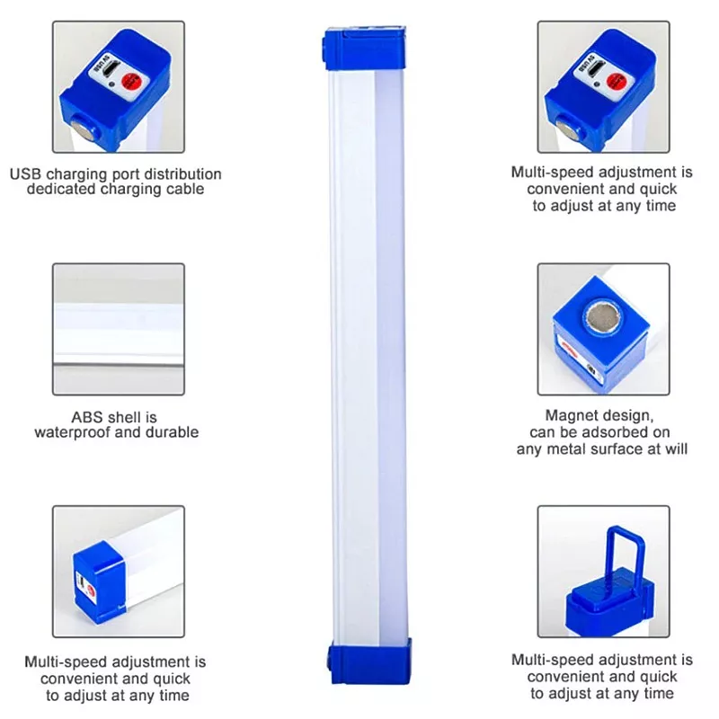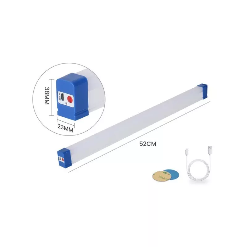 Bezprzewodowa, przenośna listwa magnetyczna led, przenośna świetlówka, ładowana z dowolnej ładowarki USB. Posiada trzy tryby świecenia 100%, 50% i migotanie. W zestawie metalowe samoprzylepne podkładki mocujące do przyklejenia np. w szafce i kabelek do ładowania z portu USB. Oprawa posiada dwa magnesy mocujące i wieszaczek dzięki czemu można ją powieść w dowolnym miejscu. Lampa może być też z powodzeniem używana w plenerze jako oświetlenie namiotu czy przyczepy, a w razie problemów możemy włączyć tryb S.O.S poprzez przytrzymanie przycisku.