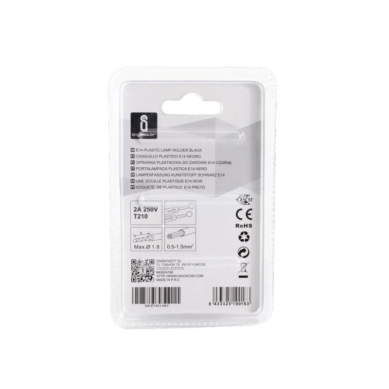 Obudowa lampy trudnopalna. Precyzyjne przewodzenie prądu elektrycznego. Certyfikat. Łatwa instalacja z wtyczką. Wysokiej jakości izolujące tworzywo sztuczne zapewnia bezpieczeństwo użytkowania energii elektrycznej. Wysoka przewodność , odporne na korozję i zużycie, wysokiej jakości i trwałe. Dzięki technologii produkcji o wysokim standardzie otwór otwierający i gwint są gładkie i precyzyjne. Wszystkie produkty posiadają certyfikaty CE, RoHS, ENEC zapewniające bezpieczeństwo. 1- Napięcie nie może przekraczać 250 V, a prąd nie może przekraczać 2 A