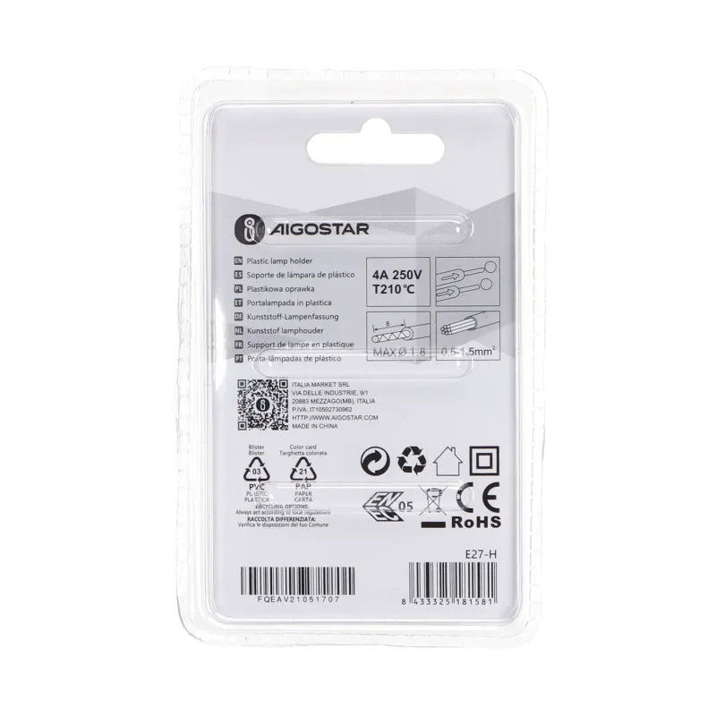 Oprawka żarówki E27 z tworzywa sztucznego, skręcana biała