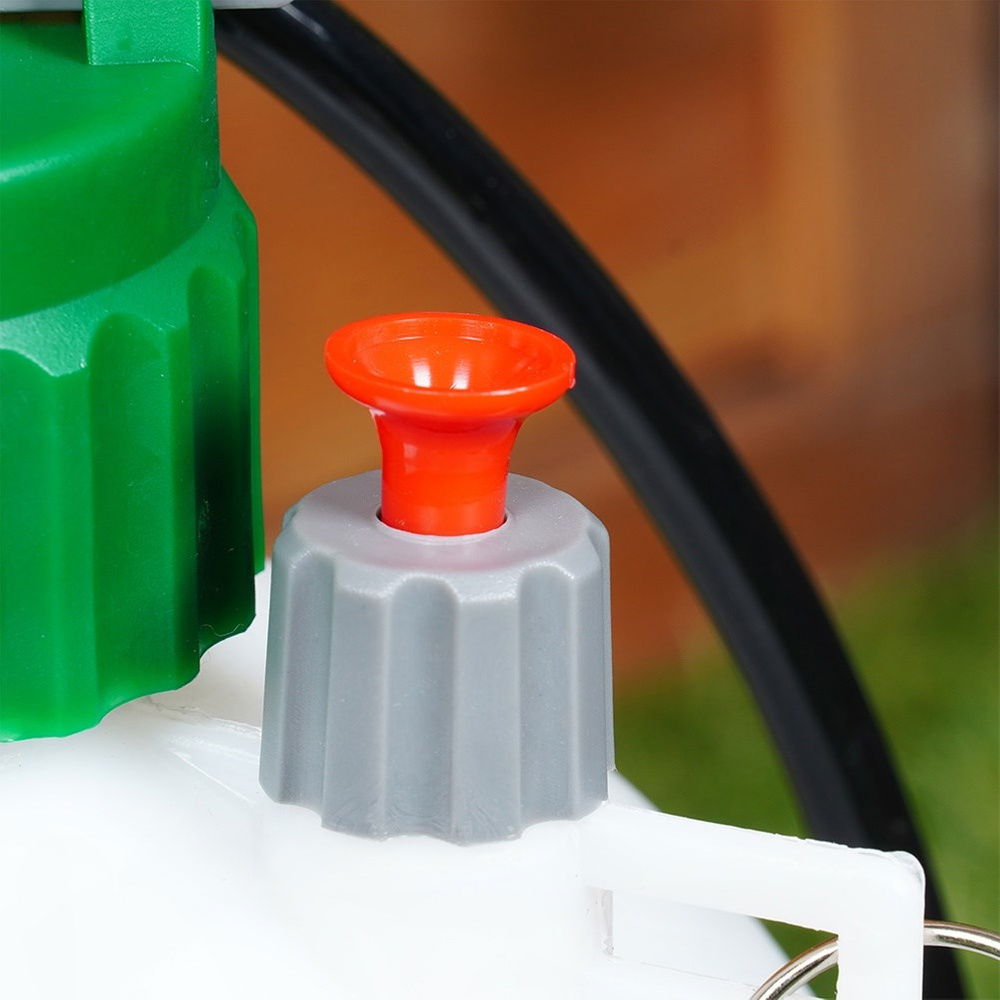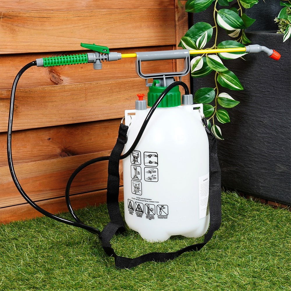 Ręczny, ciśnieniowy opryskiwacz do roślin - Przydatny opryskiwacz do roślin o pojemności 5 l. Spryskiwacz ma wymiary 18 x 18 x 40 cm, wężyk wraz z uchwytem ma długość 130 cm, lanca ma długość 36 cm. Ręcznie, bez większego wysiłku, wytworzysz odpowiednie ciśnienie w spryskiwaczu. Maksymalne ciśnienie do wytworzenia to 3,2 bar. Posiada funkcję blokady.