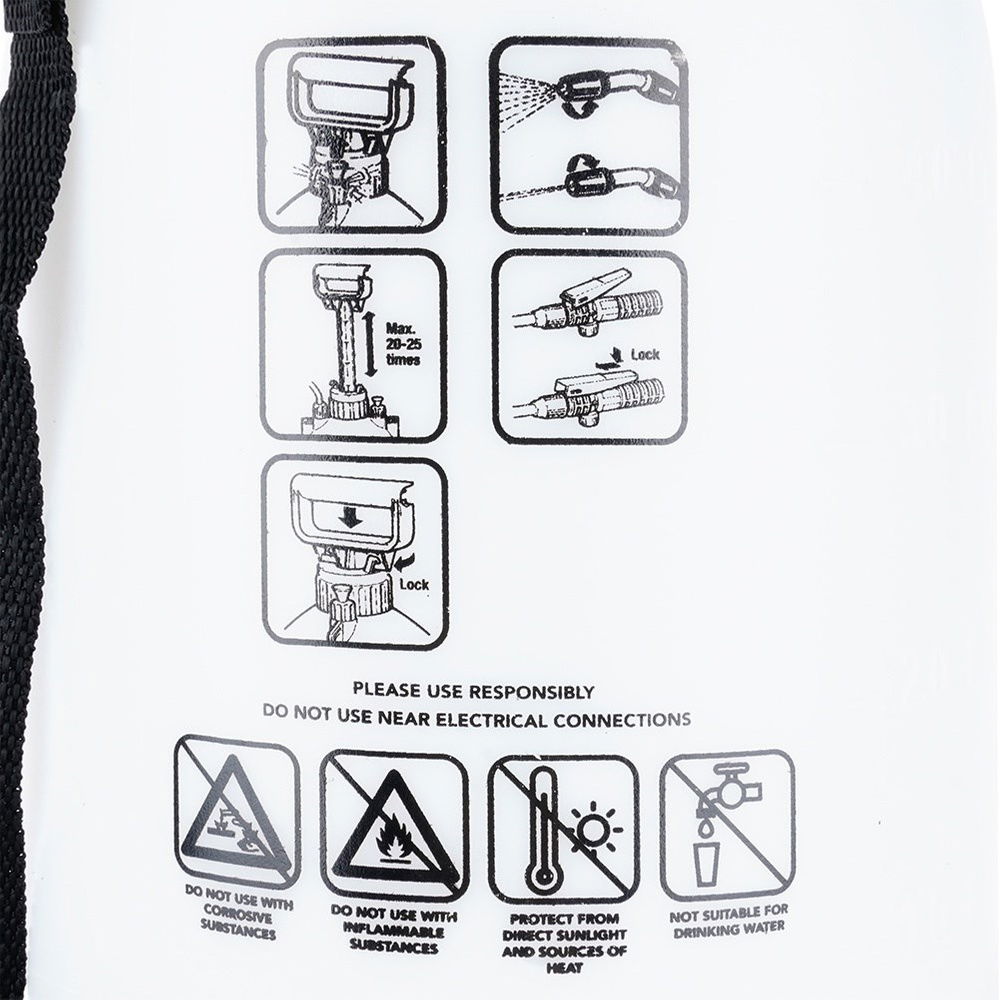 Regulowany strumień wody - Zbiornik został wykonany z najwyższej jakości tworzywa w kolorze białym. Lanca posiada możliwość ustawienia odpowiedniego trybu spryskiwania za pomocą dyszy. Ponadto dźwignię ciśnienia można zablokować w celu zapewnienia ciągłego opryskiwania.