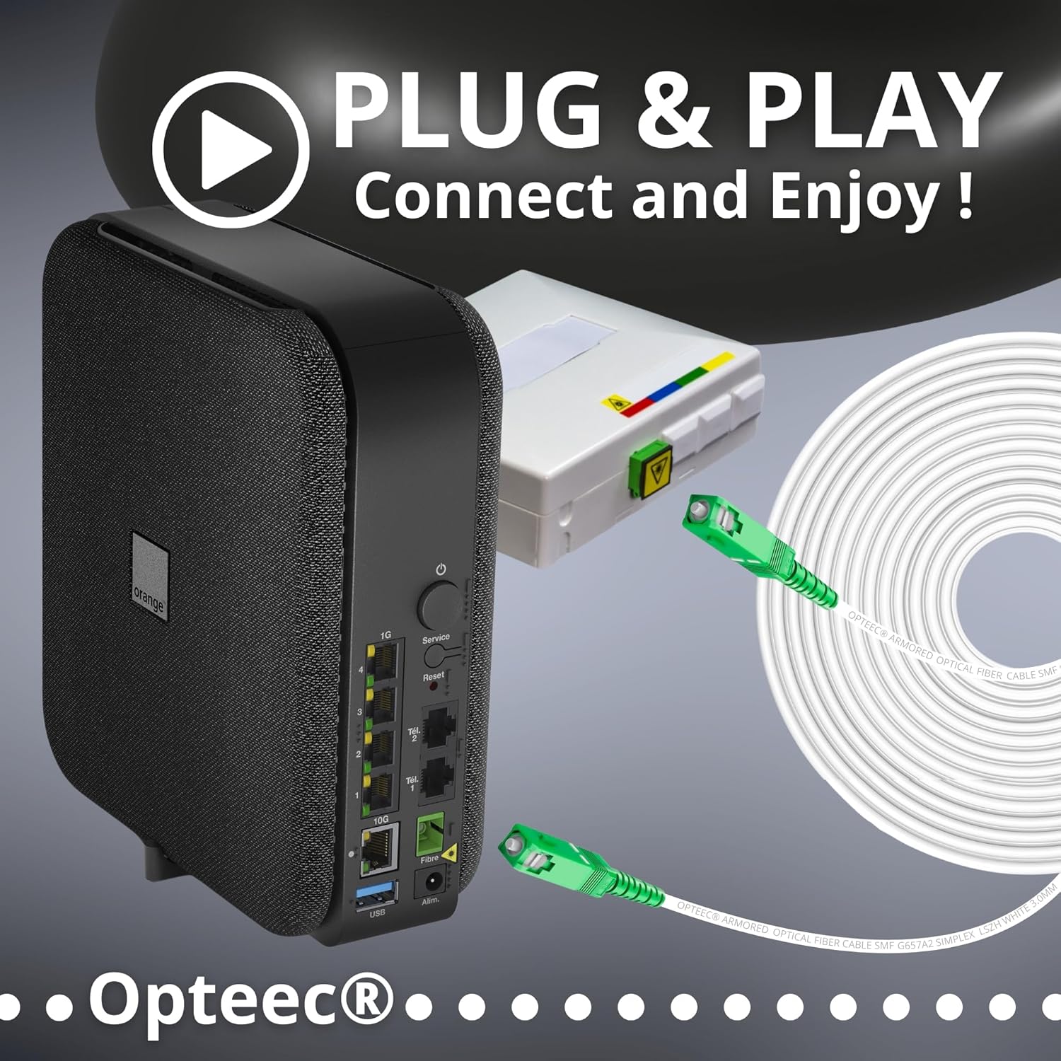 100% kompatybilności: współpracuje ze wszystkimi routerami internetowymi i urządzeniami kompatybilnymi z operatorami światłowodowymi ORANGE, SFR, Bouygues Telecom, Sosh, Red by SFR.