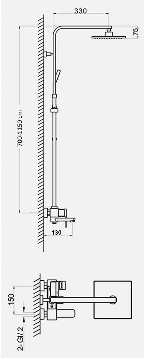Wskazówka: Dla optymalnej instalacji zestawu OPTI, np. w systemie "wanna z parawanem", sugerujemy zakup przedłużki (+ 25 cm).