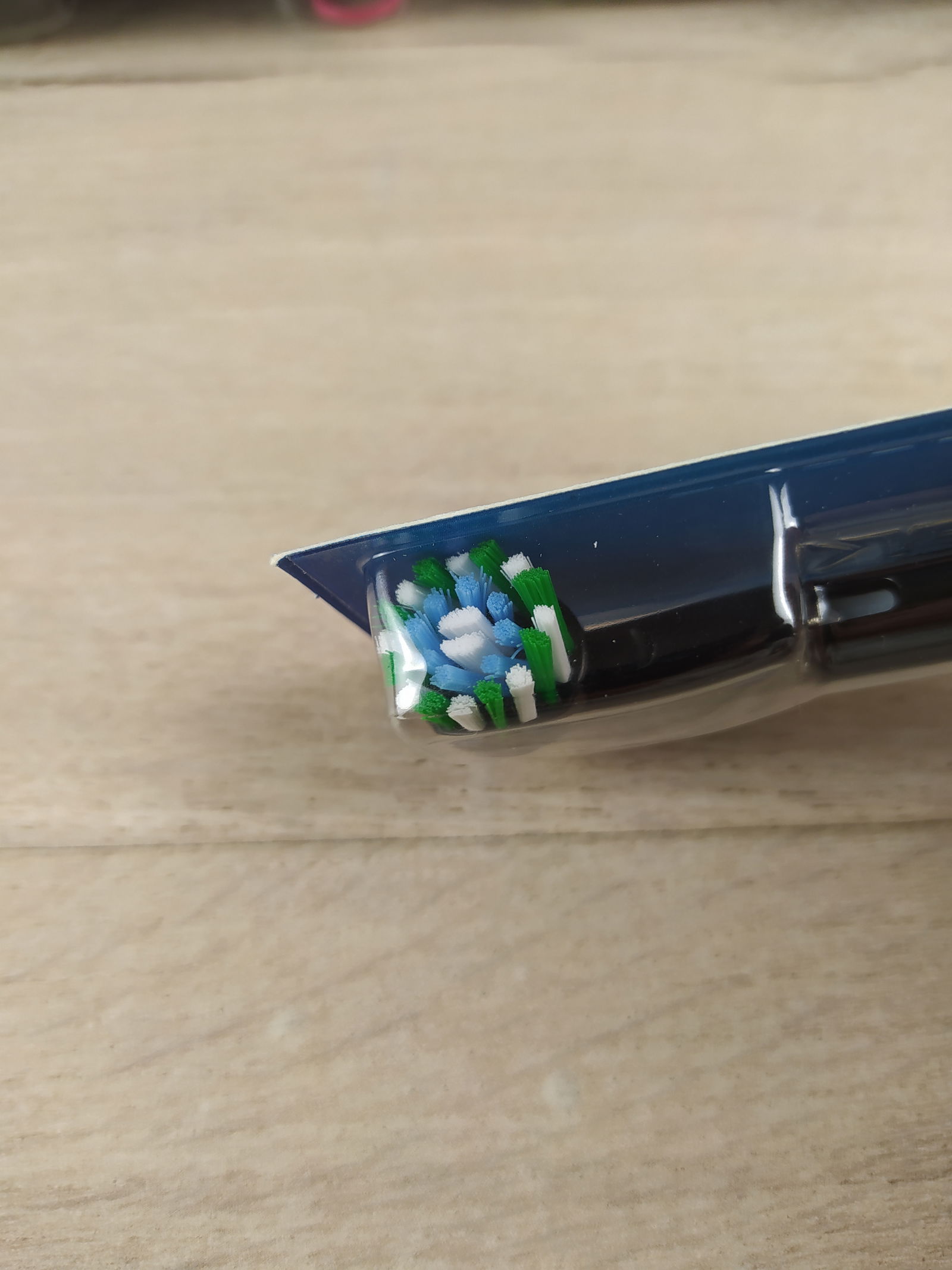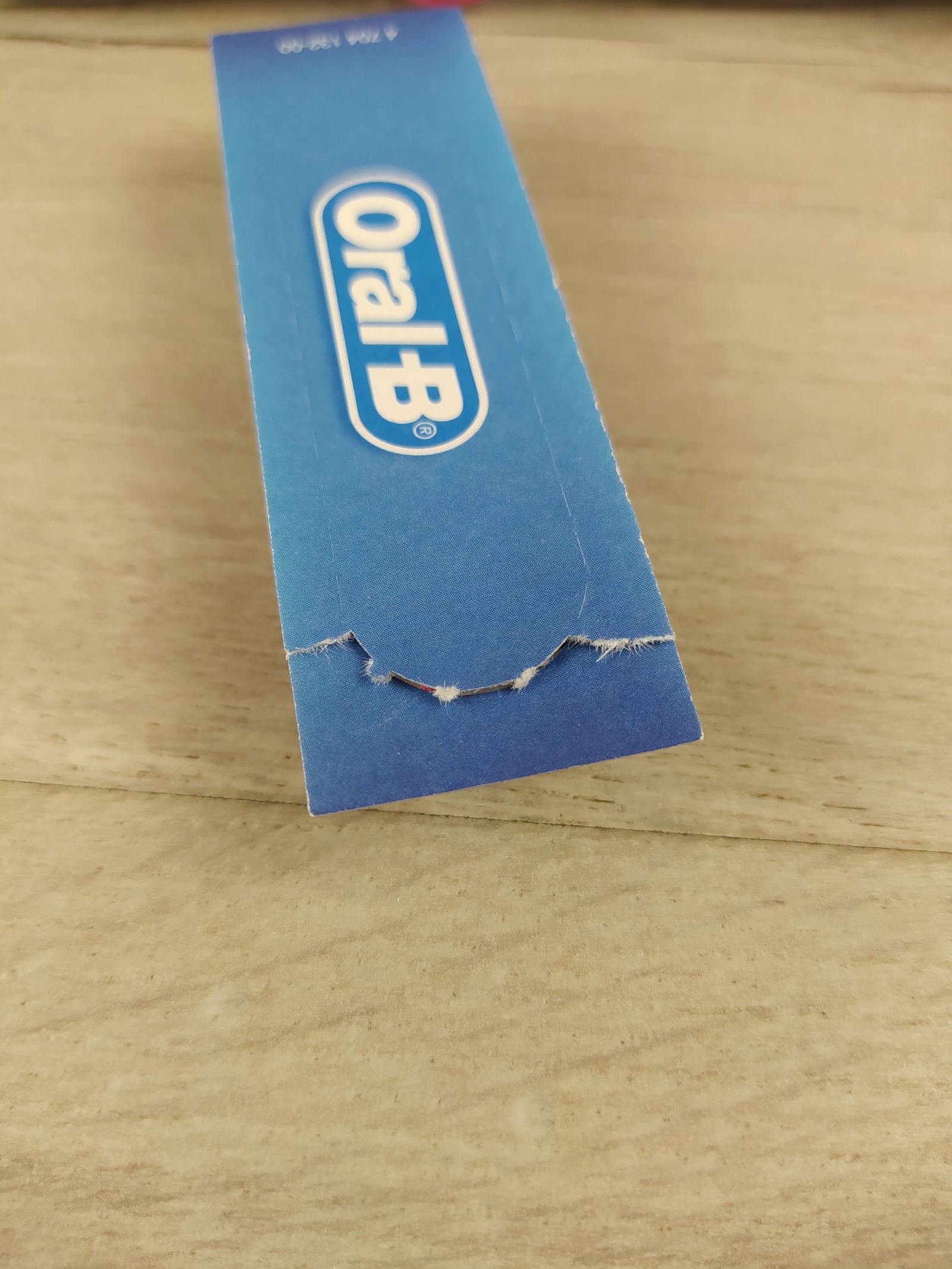 Jedna szczoteczka ma lekko naderwane opakowanie.