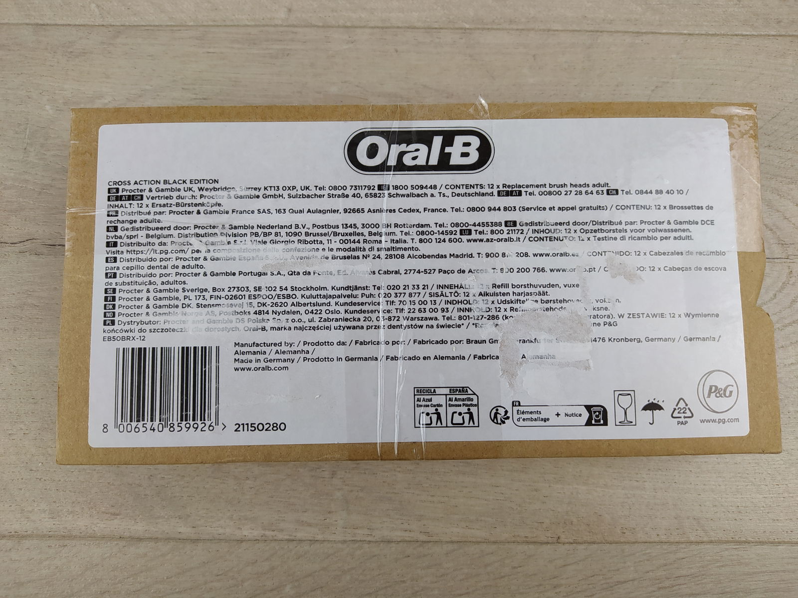 - 12 główek szczoteczki Oral-B Pro Cross Action w opakowaniach nadających się do recyklingu do skrzynki pocztowej (bez nadruku)