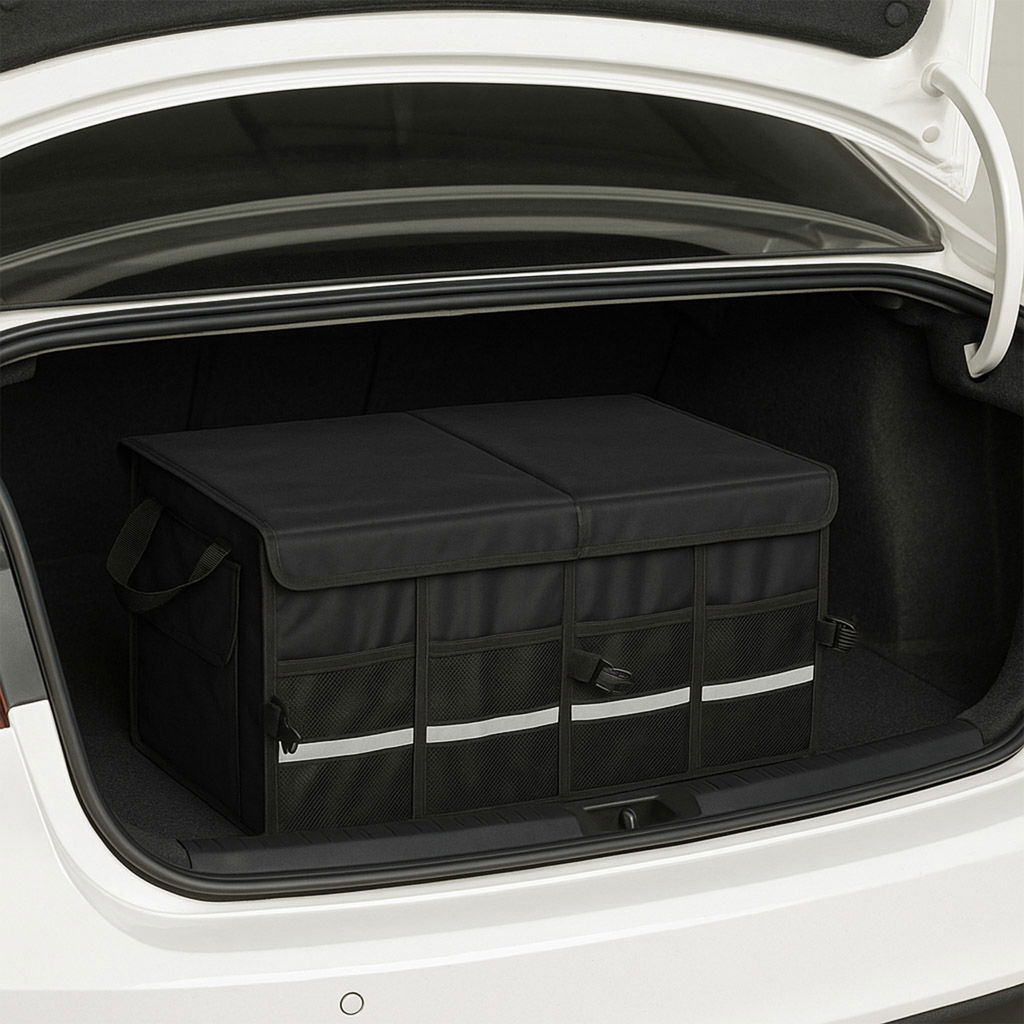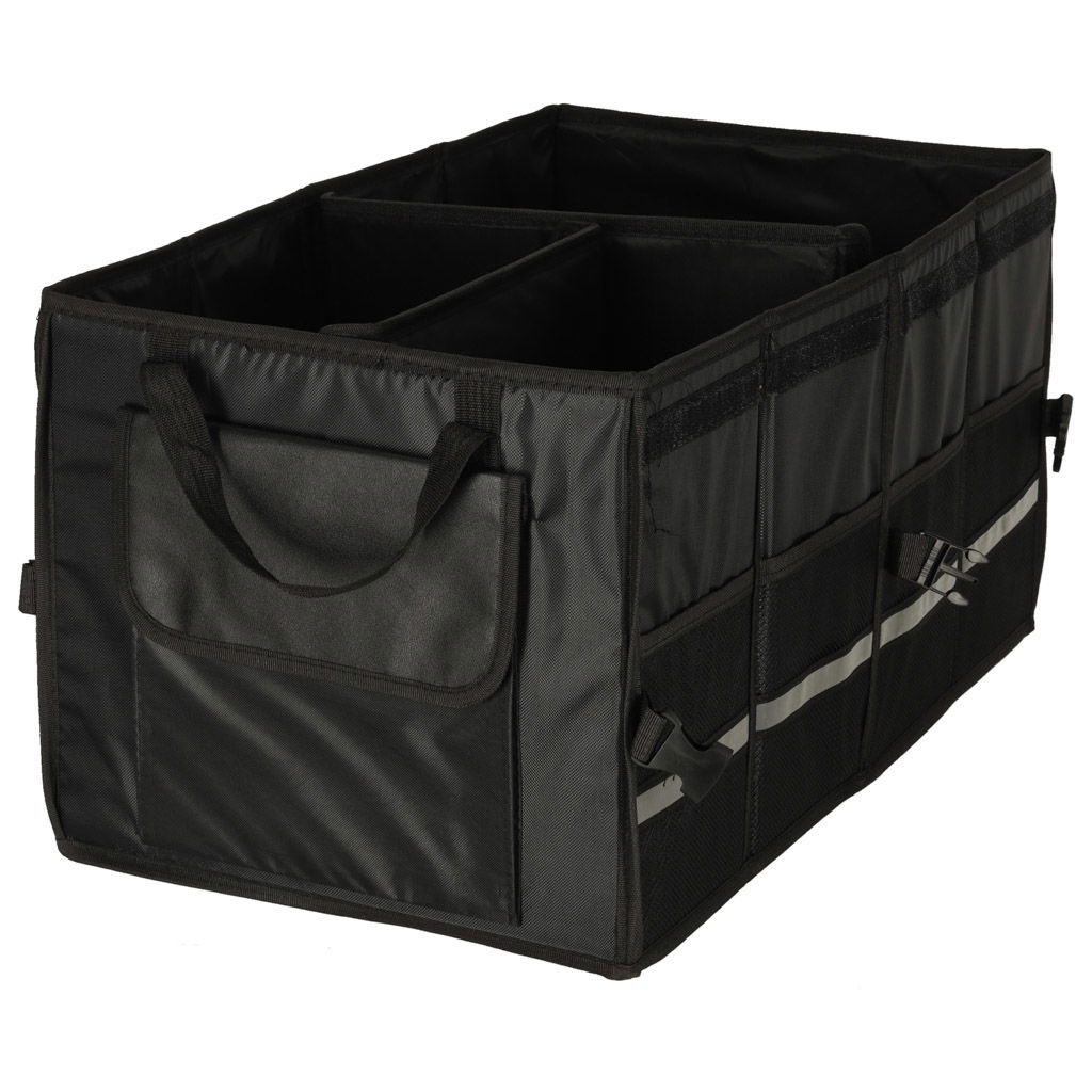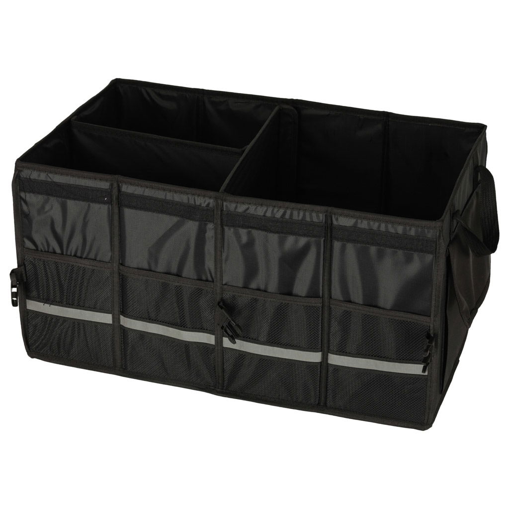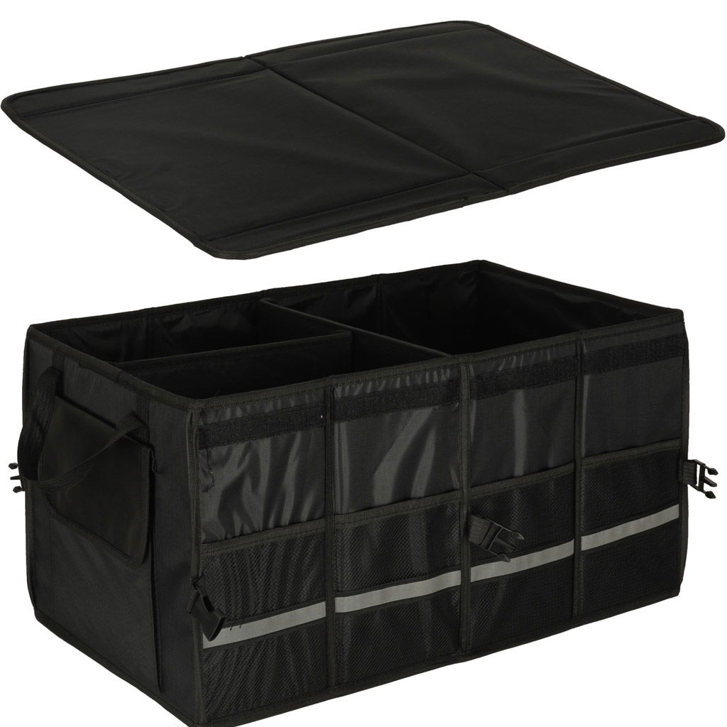 WIĘCEJ PORZĄDKU W TWOIM BAGAŻNIKU - Torba samochodowa z przegródkami to praktyczne rozwiązanie dla każdego kierowcy, który chce utrzymać porządek podczas codziennych dojazdów czy rodzinnych wyjazdów. Pojemne wnętrze, aż 3 główne komory oraz 6 dodatkowych kieszeni umożliwiają łatwe posegregowanie zakupów, narzędzi czy akcesoriów samochodowych – wszystko ma swoje miejsce.