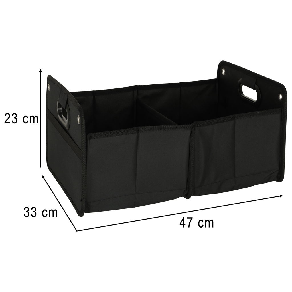 SKŁADANY I KOMFORTOWY W UŻYTKOWANIU - Organizer można w prosty sposób złożyć – po złożeniu ma tylko 3,5 cm grubości, co pozwala na jego przechowywanie w schowku, pod siedzeniem lub przy ściance bagażnika. Rzepy na spodzie i klapki po bokach zapewniają stabilność konstrukcji po rozłożeniu. Wygodne uchwyty ułatwiają przenoszenie, a materiał Oxford cechuje się odpornością na przetarcia, wilgoć i zabrudzenia. To połączenie praktyczności, mobilności i wytrzymałości, które sprawdzi się w codziennym użytkowaniu samochodu.