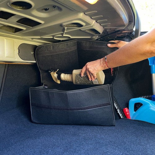 - Upewnij się, że organizer jest odpowiednio zamocowany w bagażniku, aby zapobiec jego przemieszczaniu się podczas jazdy.- Przed rozpoczęciem jazdy upewnij się, że wszystkie kieszenie i przegródki organizera są dobrze zamknięte. - Unikaj ostrych przedmiotów, które mogą uszkodzić organizer lub stanowić zagrożenie w przypadku gwałtownego hamowania. - Regularnie sprawdzaj organizer pod kątem zużycia lub uszkodzeń. W razie potrzeby napraw lub wymień go, aby zapewnić bezpieczeństwo. - Utrzymuj organizer w czystości, usuwając kurz i zanieczyszczenia, które mogą gromadzić się w kieszeniach lub na powierzchni, co zapewni dłuższą trwałość i lepszą funkcjonalność.