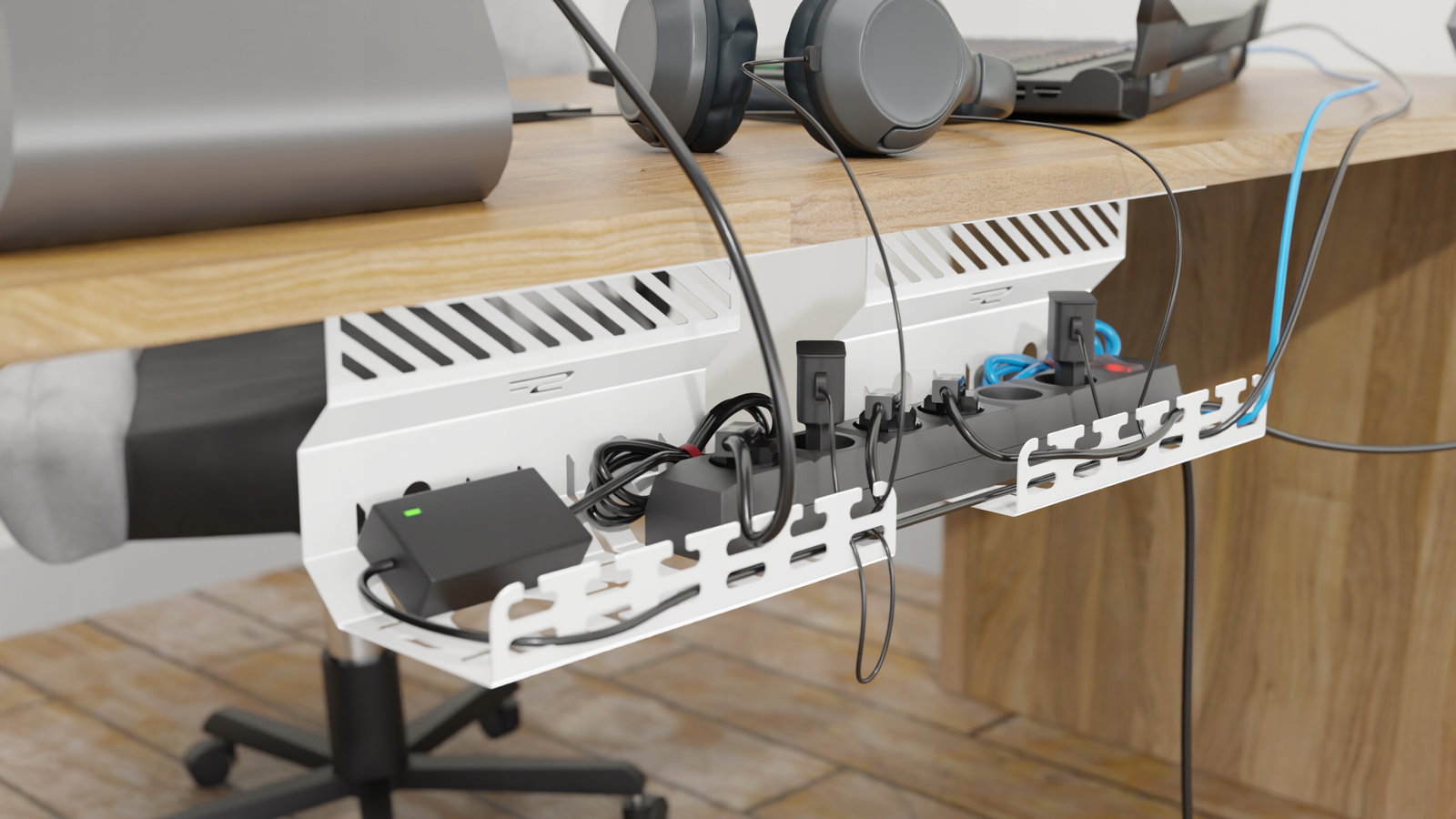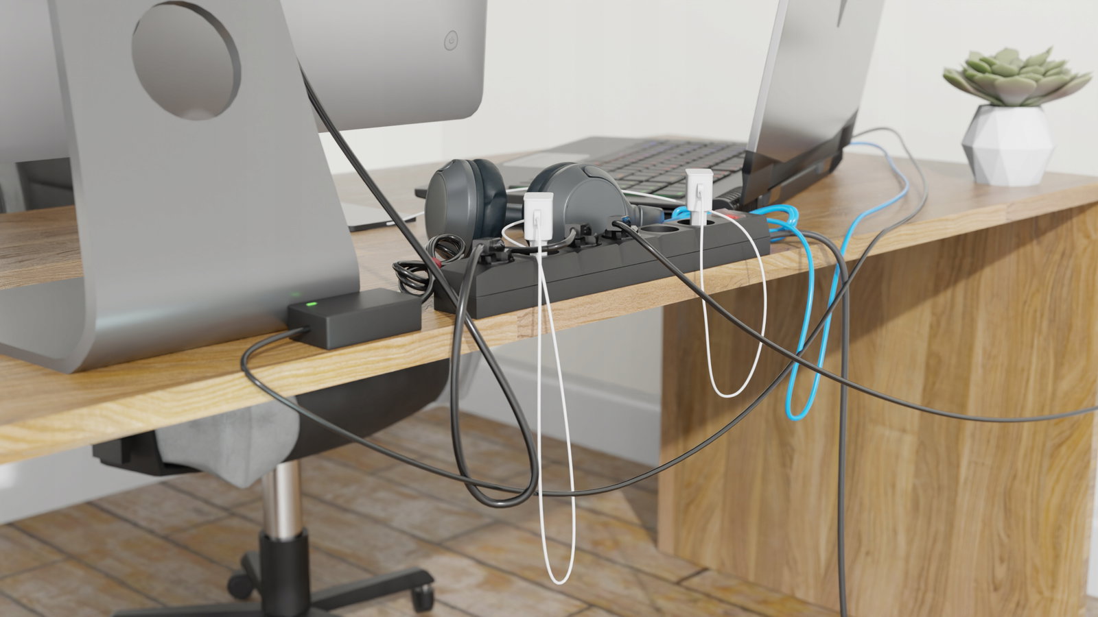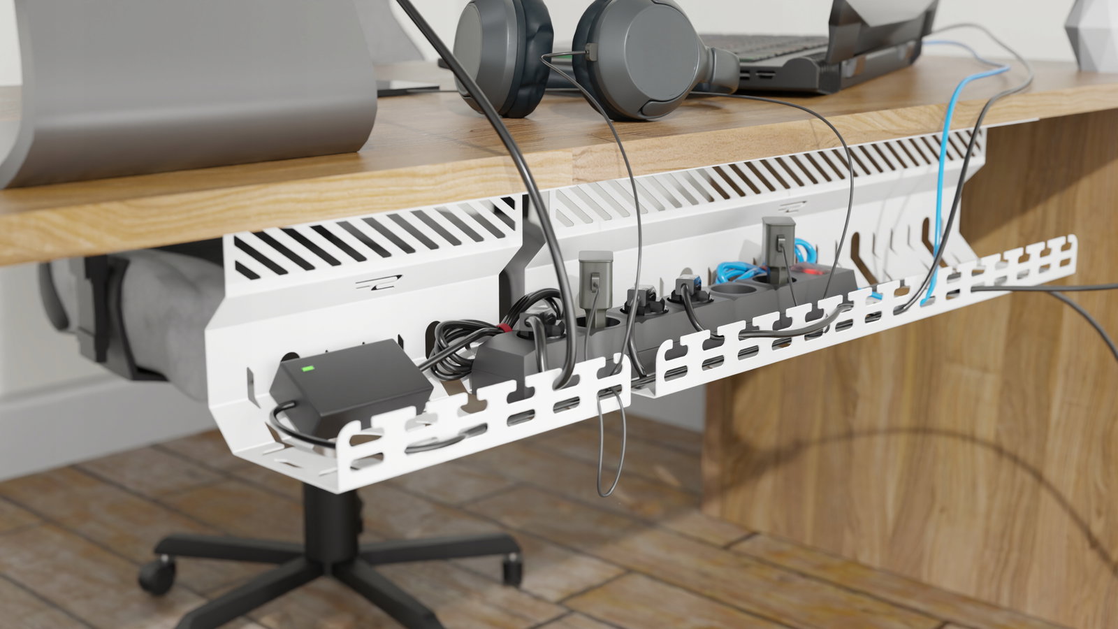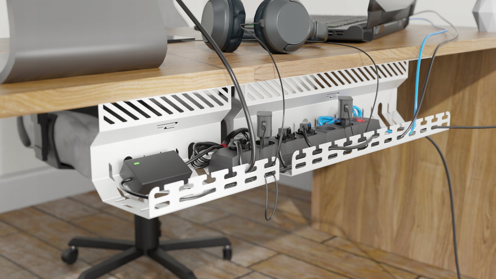Jest to idealne rozwiązanie zarówno dla domu, jak i biura, szczególnie w miejscach, gdzie dzieci i zwierzęta mogą mieć dostęp do przewodów.