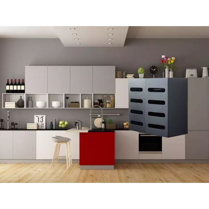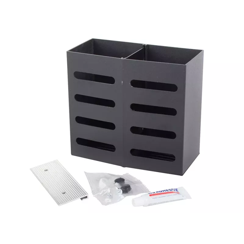 Organizer jest montowany na ścianie dzieki czemu można zaoszczędzić bardzo dużo miejsca na kuchennym blacie. Półkę można zamontować za pomocą kleju lub przy pomocy kołków i śrób dołączonych w zestawie.