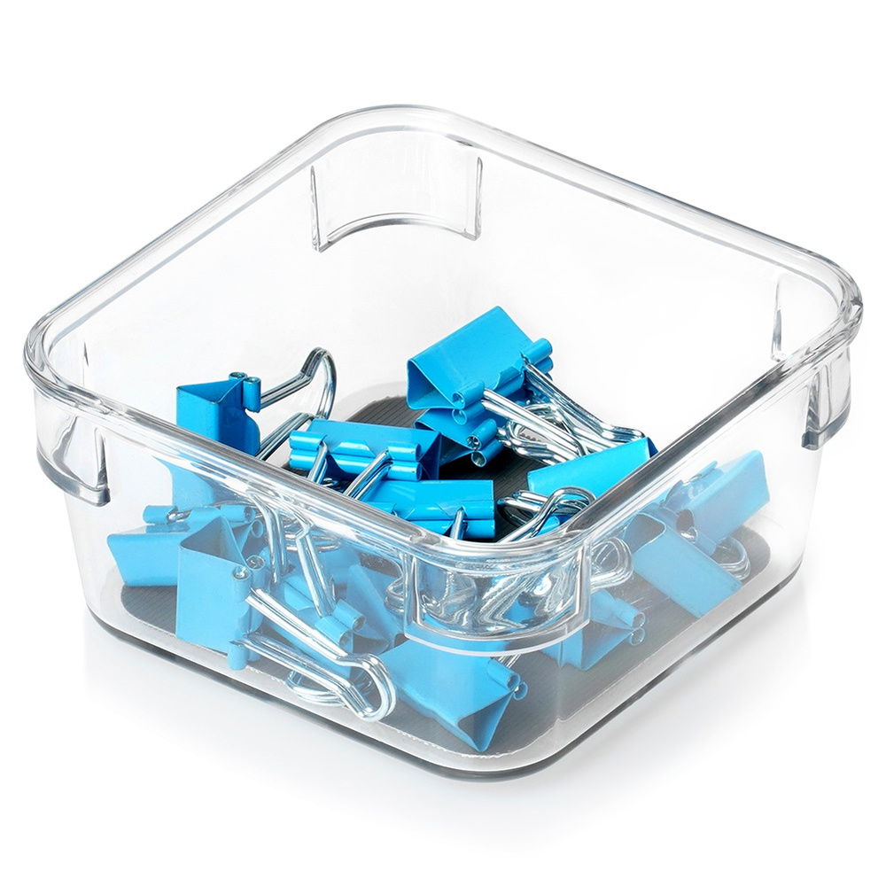 Kwadratowy pojemnik do przechowywania i uporządkowania różnych przedmiotów. Świetnie sprawdzi się do organizacji przestrzeni w szafkach, szufladach i innych miejscach do przechowywania. Niezwykle uniwersalny, znajdzie wiele zastosowań. Przydatny w kuchni, łazience, gabinecie, czy warsztacie. W naszej ofercie dostępne są również pojemniki w innych kształtach i wymiarach. Można skompletować odpowiednią liczbę organizerów w zależności od wielkości szuflady lub ilości miejsca do przechowywania.