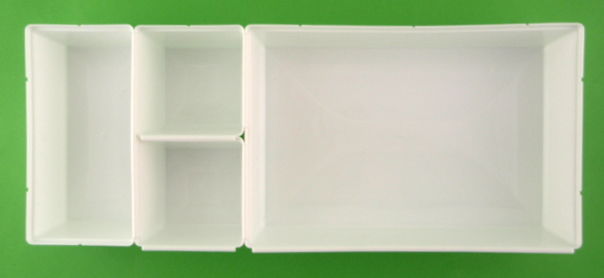 Oferujemy Państwu praktyczny organizer modułowy do szuflady, złożony z 8 elementów, które można łatwo łączyć w różnych kombinacjach. Przykładowe układy pokazane są na zdjęciach. DODATKOWE elementy dostępne na innych naszych aukcjach!!!