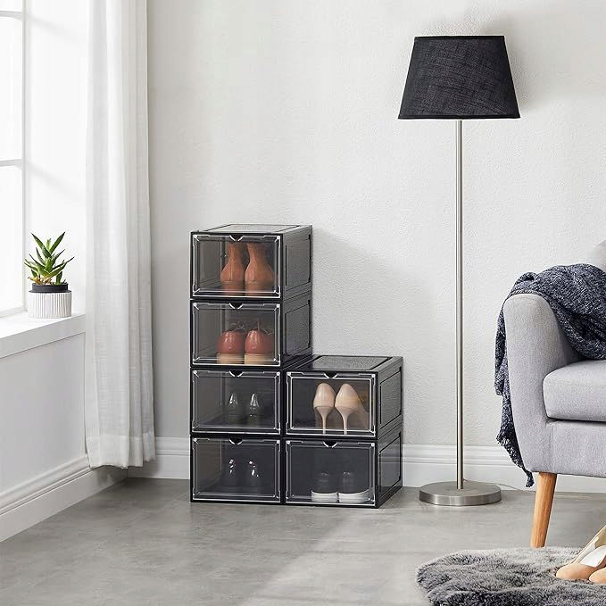 ☑️ Pożegnaj się z chaosem butów! Chcesz uratować swój korytarz przed rozproszonymi butami? W takim razie czas przetestować nasze pudełek na buty – każde pudełko jest wystarczająco duże, aby pomieścić parę butów do rozmiaru 46 (wymiary wewnętrzne 25,5 x 33 x 17,5 cm)