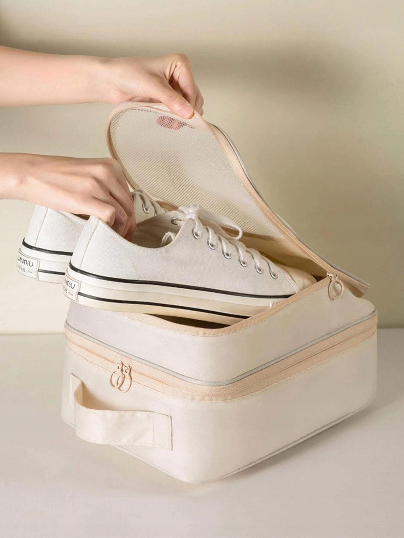ORGANIZER NA BUTY SZPILKI WALIZKA TORBA WOREK BEŻOWA DO SAMOLOTU WAKACJE