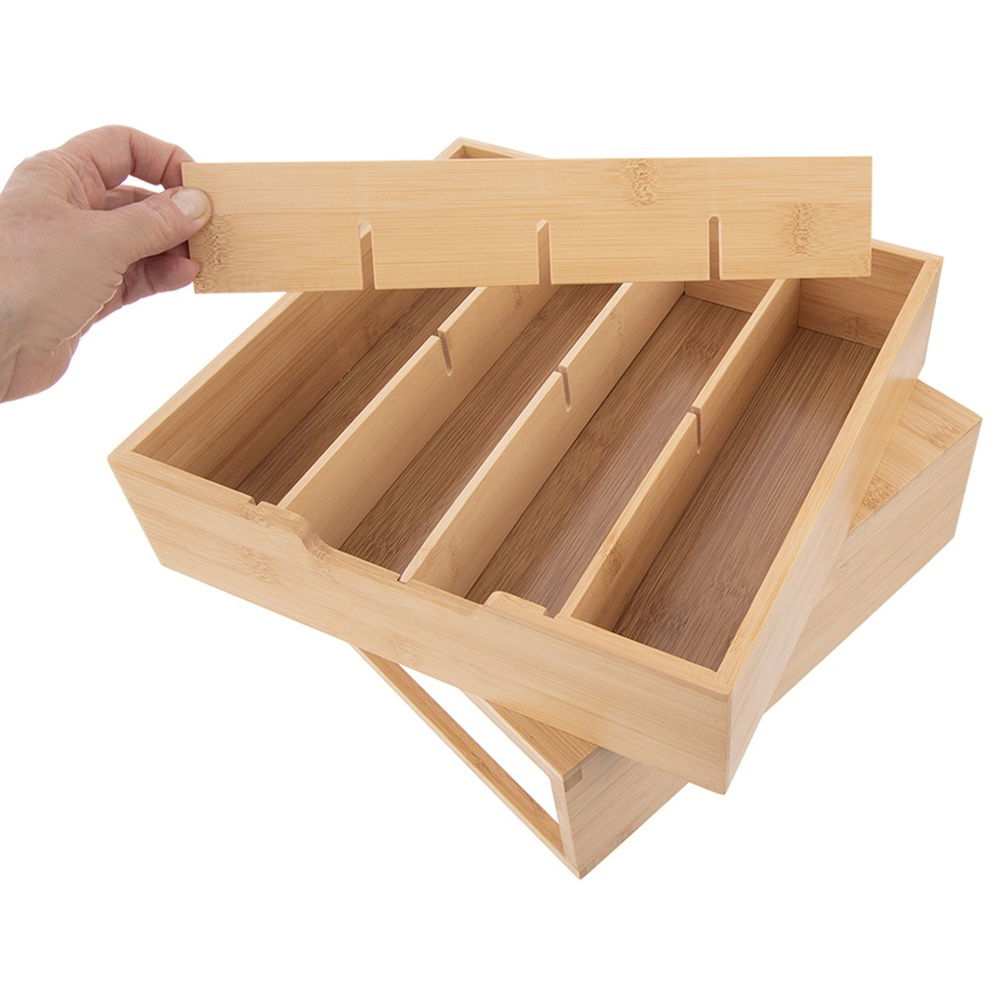 Bambusowy organizer to funkcjonalne i estetyczne rozwiązanie, które pomoże utrzymać porządek w każdym wnętrzu. Dzięki wyjmowanym przegrodom i solidnej konstrukcji można go łatwo dopasować do indywidualnych potrzeb i różnych rodzajów przechowywanych przedmiotów. Naturalny materiał i uniwersalny wygląd sprawiają, że organizer doskonale wpasuje się w wystrój kuchni, biura czy łazienki.