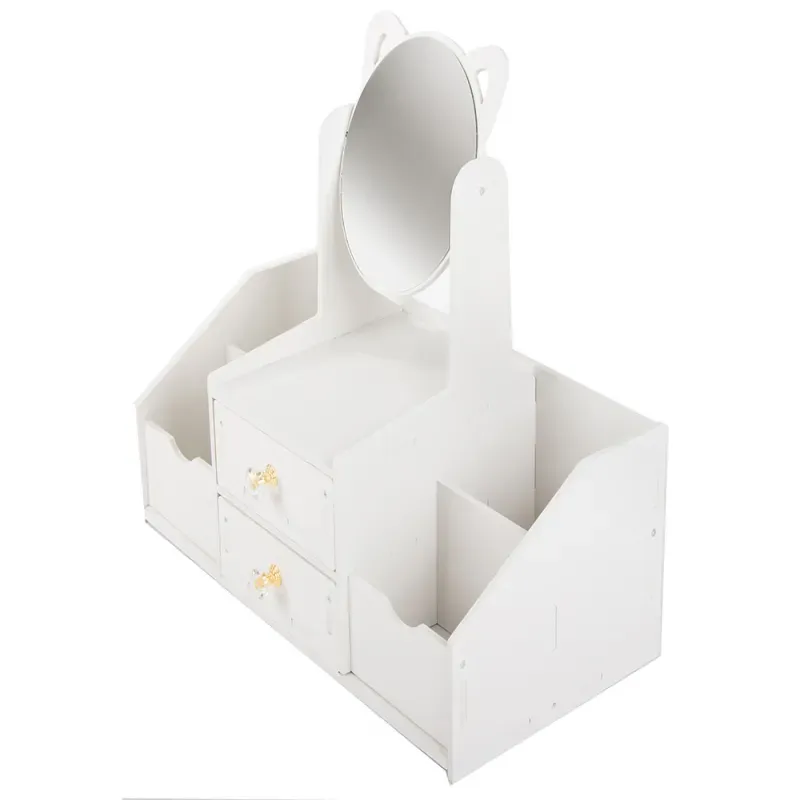 Toaletka wyposażona jest w dwie pojemne szuflady i półki, dzięki którym będziesz mieć wszystkie niezbędne kosmetyki i akcesoria pod ręką.