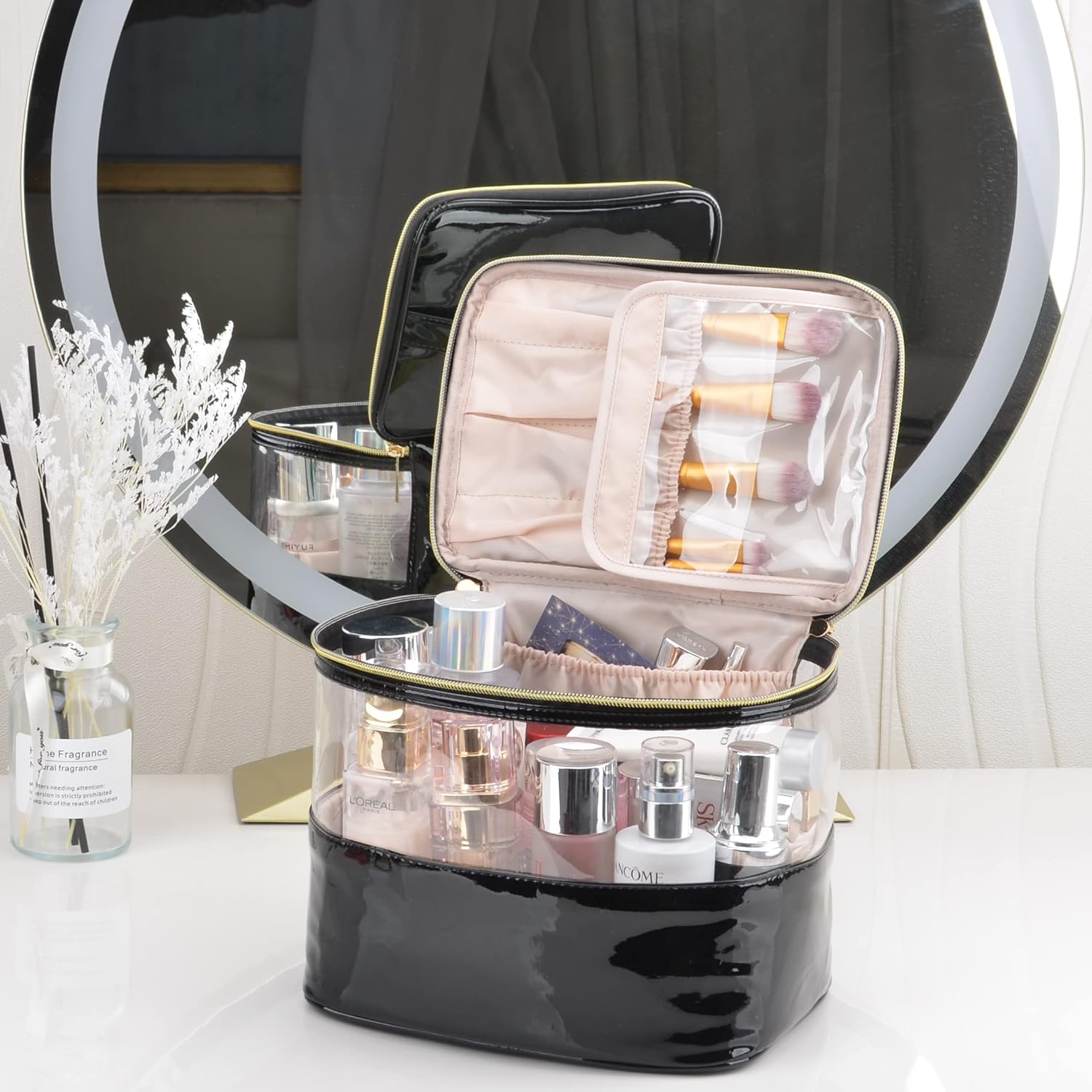 ✅ Trwała konstrukcja: Wykonana z wysokiej jakości wodoodpornej skóry PU, przezroczystego PVC i nylonowej podszewki o wysokiej gęstości, ta kosmetyczka jest trwała i odporna na uszkodzenia. Złoty zamek błyskawiczny dodaje eleganckiego akcentu i zapewnia łatwe otwieranie i zamykanie.