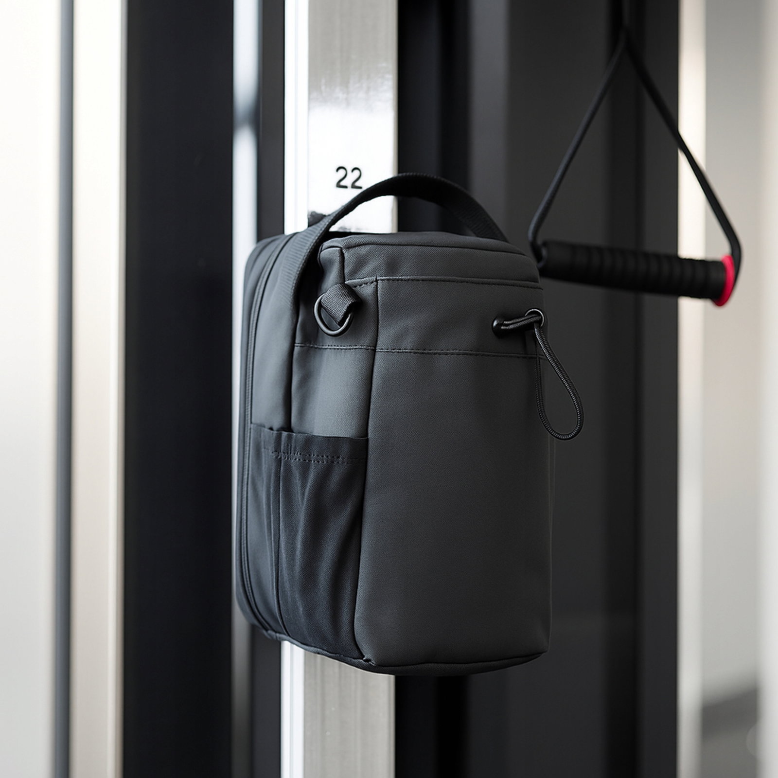 Torba posiada mocny magnes, który stabilnie trzyma się metalowych powierzchni, takich jak sprzęt na siłowni. Dzięki temu masz butelkę zawsze pod ręką, bez ryzyka upadku czy przesuwania.