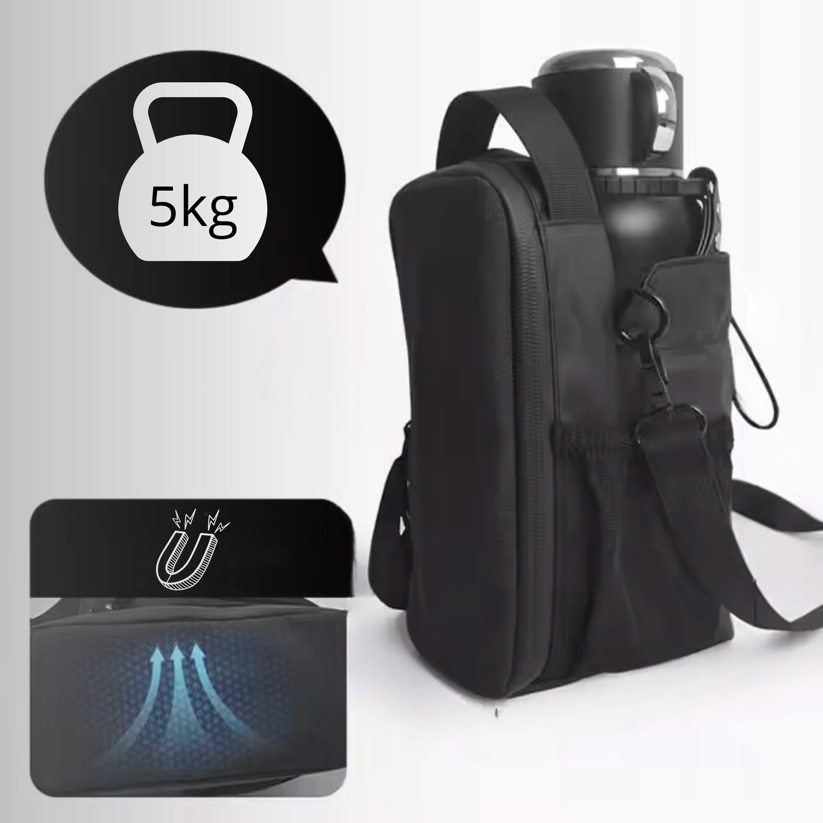 ✅Stylowa torba z magnesem zapewnia szybki dostęp do butelki z wodą podczas ćwiczeń.