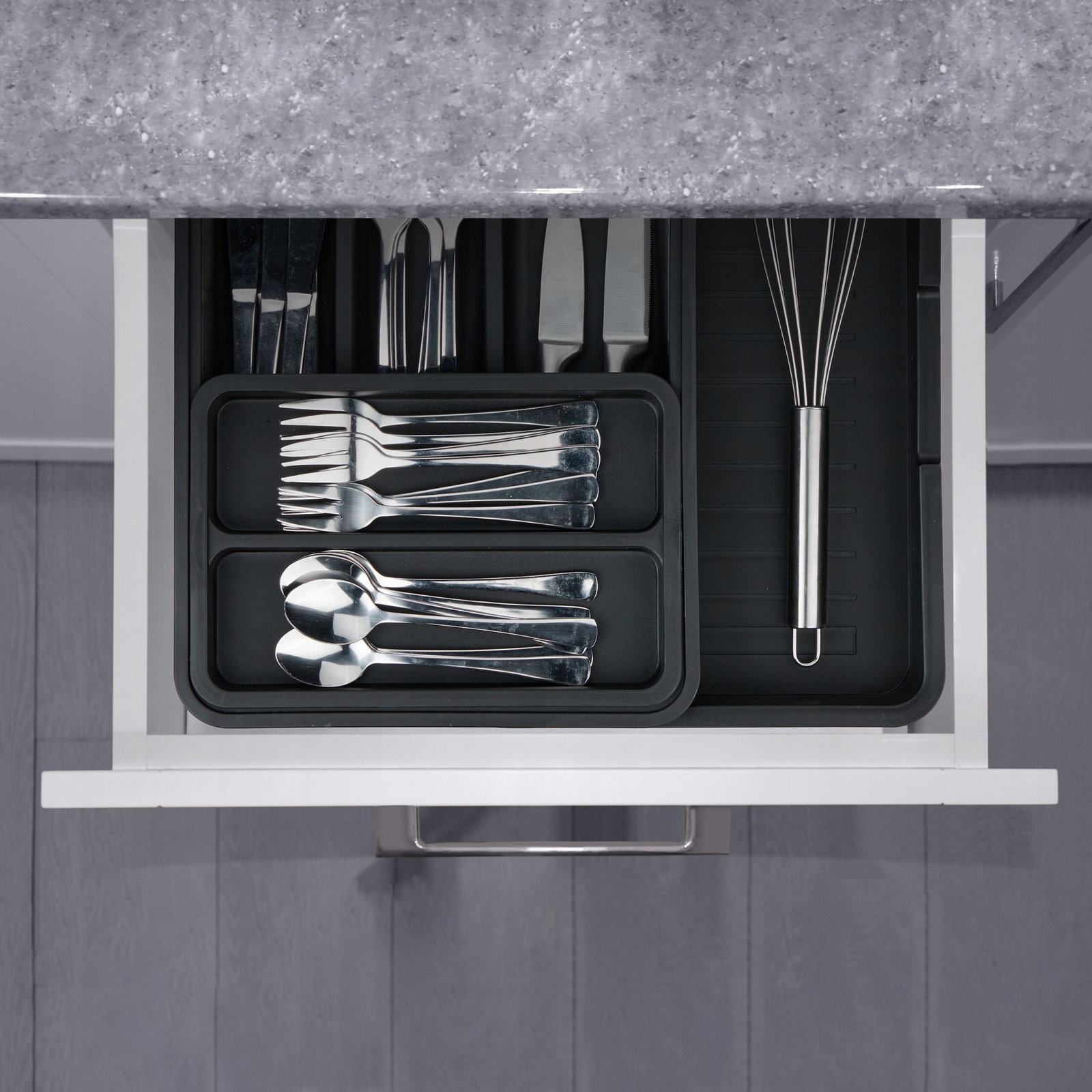 ❇️ Dzięki regulowanej szerokości doskonale pasuje do większości szuflad, a solidna konstrukcja z tworzywa sztucznego zapewnia trwałość na lata. Wkład sprawdzi się nie tylko w kuchni — świetnie zorganizuje również akcesoria biurowe, przybory do szycia czy narzędzia rzemieślnicze.