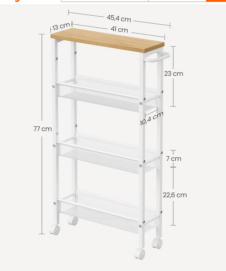 [Idealny do małych pomieszczeń] Ten wąski wózek (głębokość 13 cm) idealnie pasuje do wąskich wnęk w kuchni, łazience, biurze domowym, salonie lub sypialni. Dzięki temu wózkowi wnękowemu moż optymalnie wykorzystać przestrzeń pionową i zmaksymalizować przestrzeń do przechowywania.