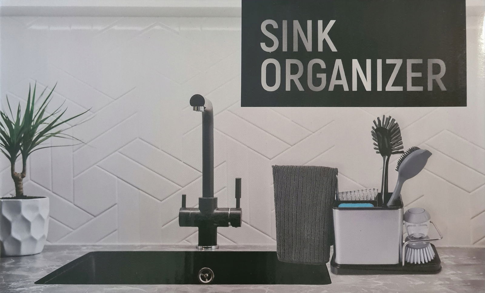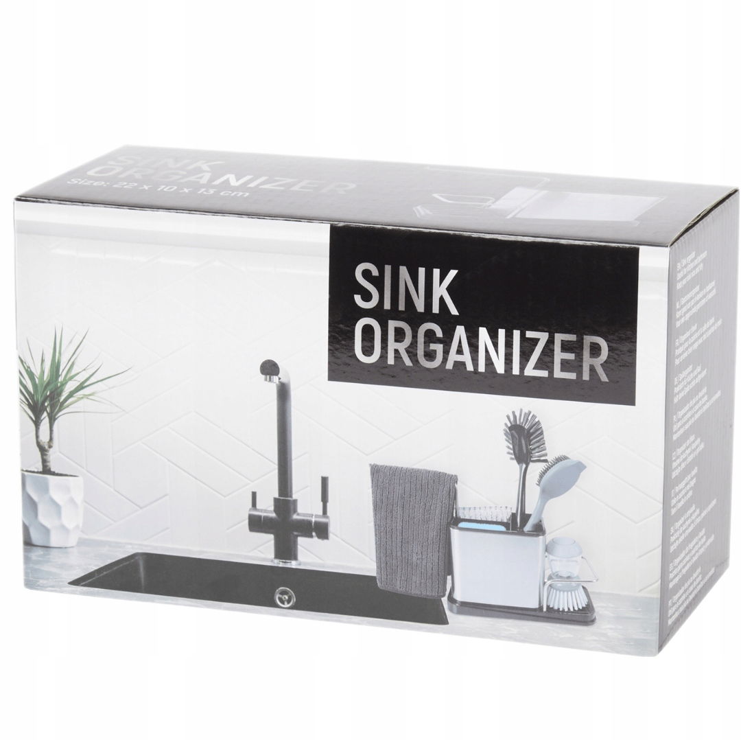 ORGANIZER PRZYBORNIK DO ZLEWU UCHWYT NA ŚCIERKĘ GĄBKĘ OCIEKACZ SREBRNY