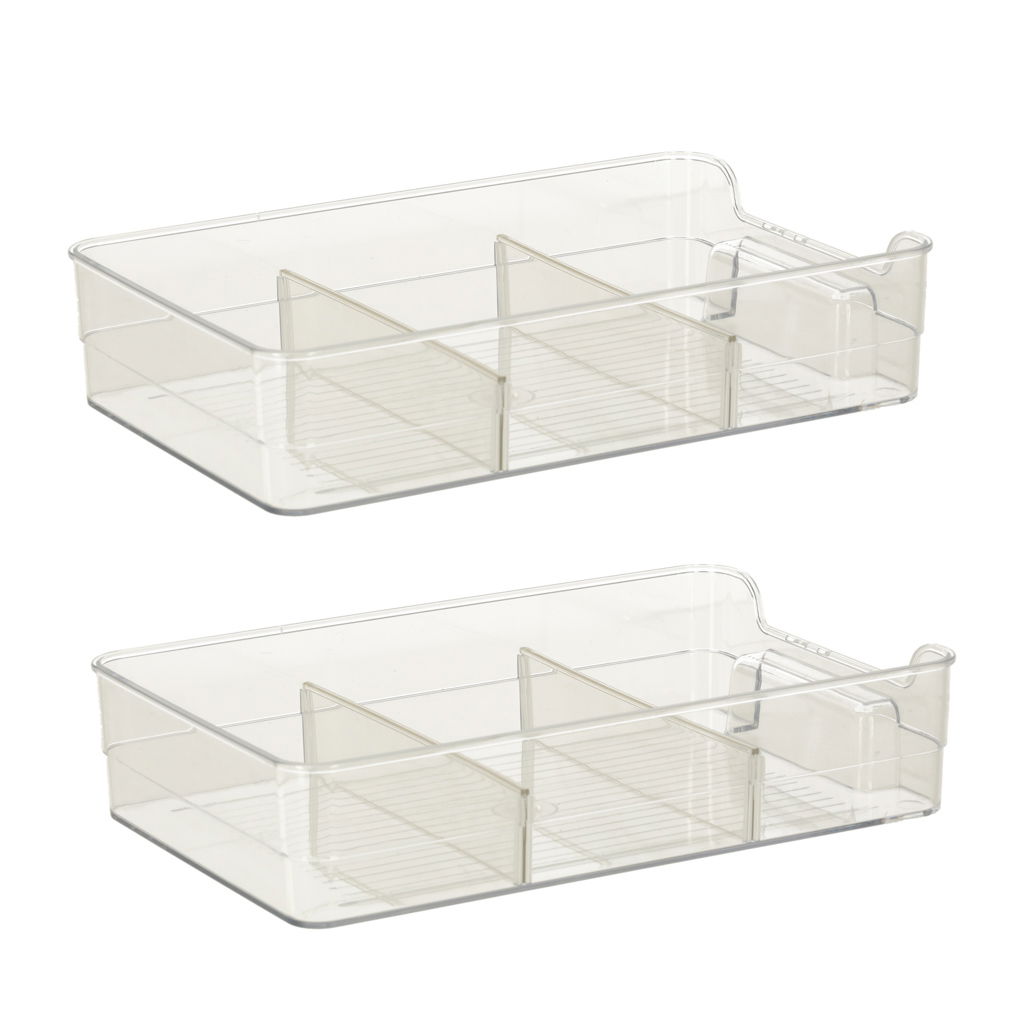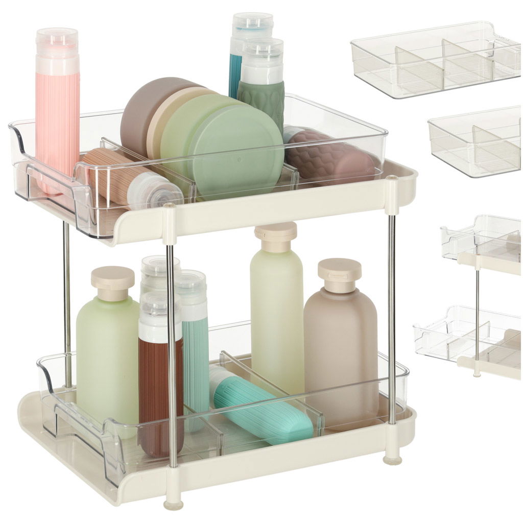 ŁATWA ORGANIZACJA KAŻDEGO POMIESZCZENIA - Minimalistyczny, przezroczysty wygląd pasuje do każdego wnętrza i dodaje przestrzeni lekkości i estetyki. Dzięki regulowanym przegrodom i dwupoziomowej budowie każda rzecz znajdzie swoje miejsce, co pozwala uniknąć bałaganu. Organizer ułatwia organizację przestrzeni, szczególnie tam, gdzie liczy się każdy centymetr.